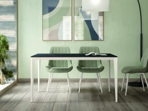Mesa de comedor fija porcelánico con estructura metálica marfil o negra.