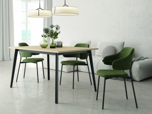 Mesa de comedor rectangular fija con estructura marfil o negra.