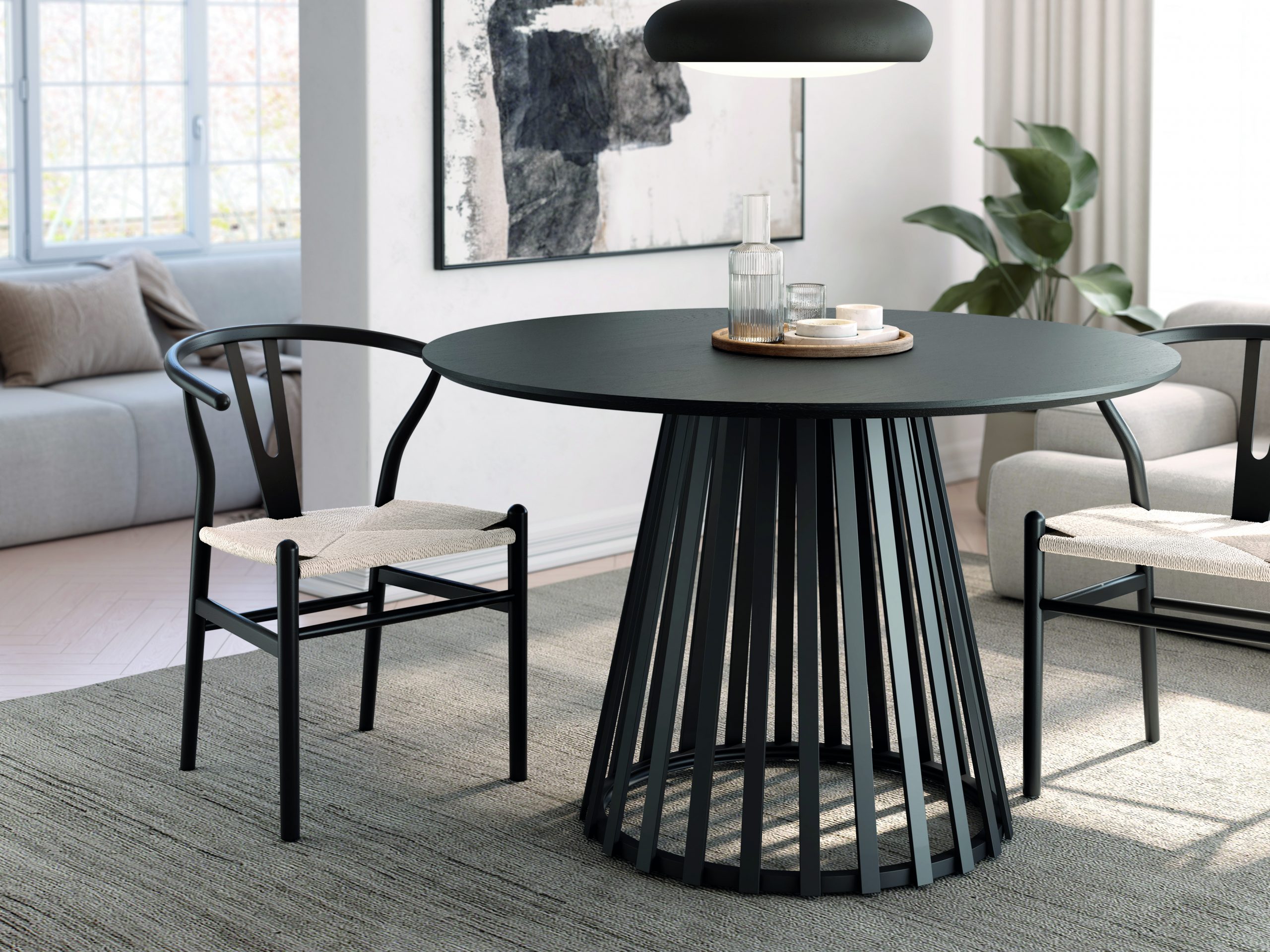 Mesa comedor redonda fija con pata metálica marfil o negra.