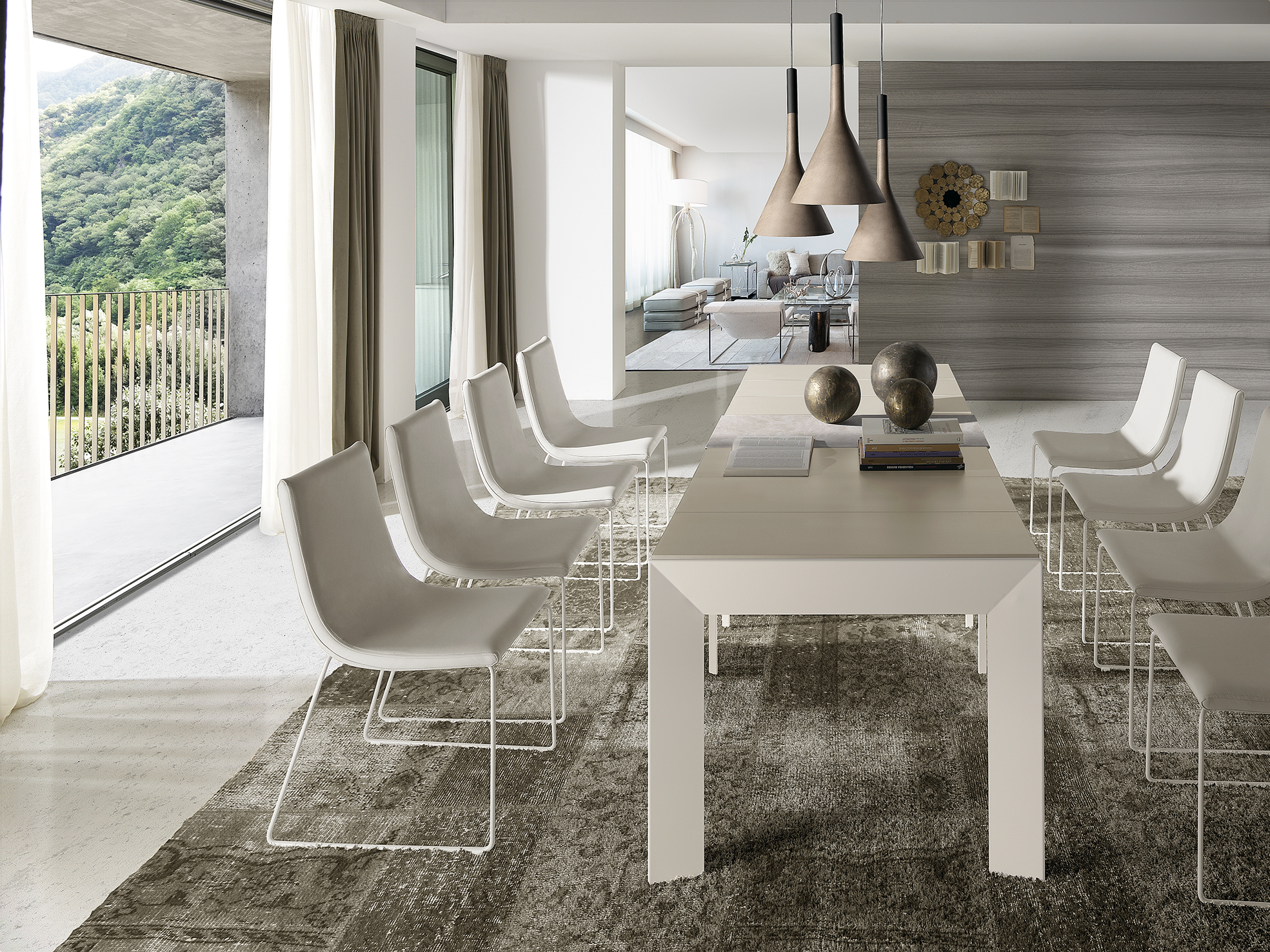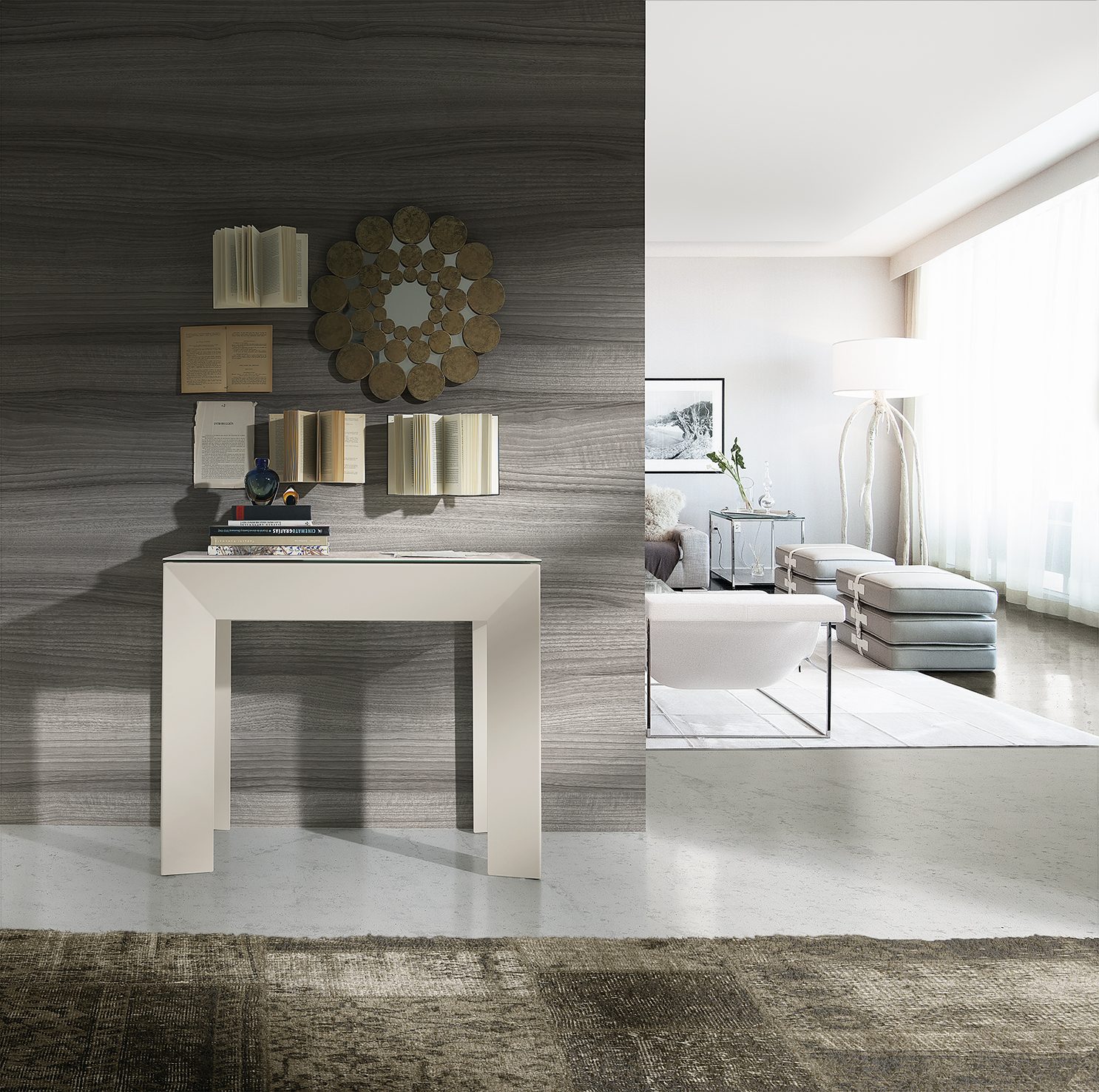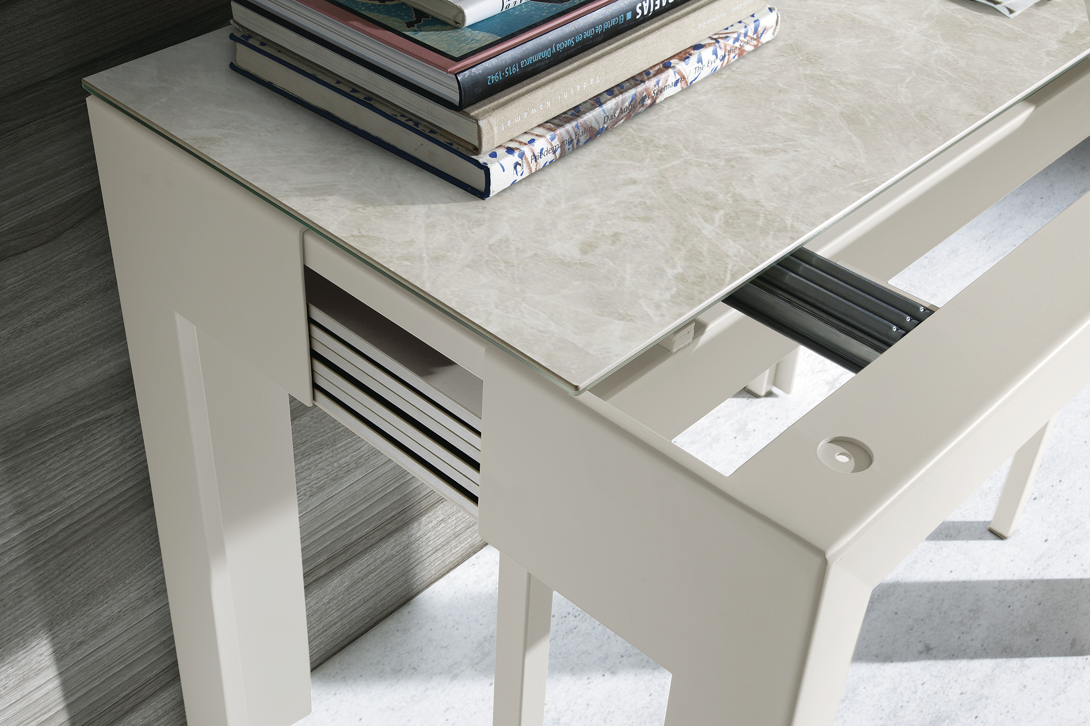 Mesa comedor consola modelo Voila con estructura Nube tapa Diamond Cream