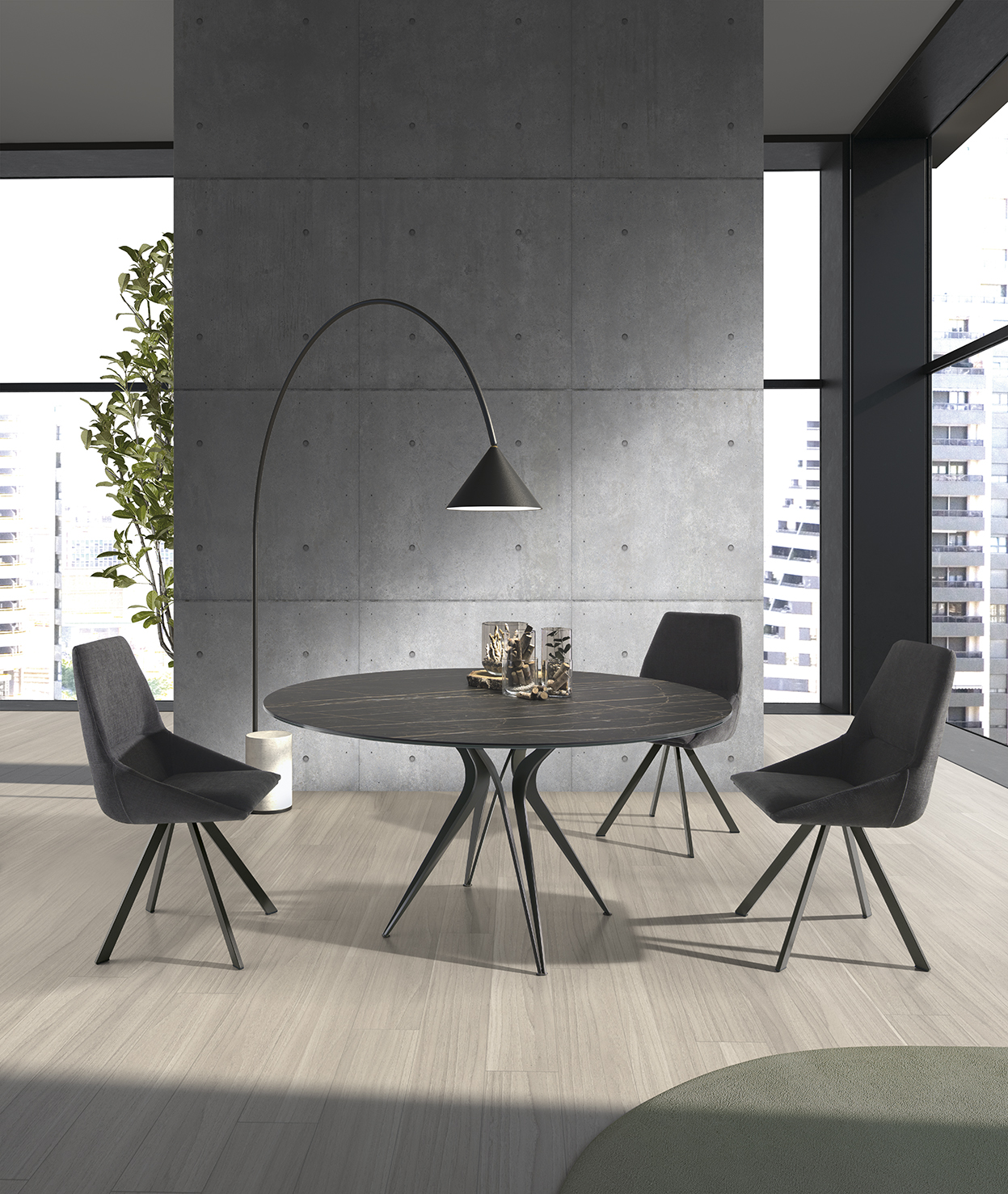 Mesa comedor redonda modelo Jazz con estructura Grafito y tapaNoir Desir.