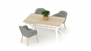Mesa comedor con estructura metálica y tapa madera fija o extensible