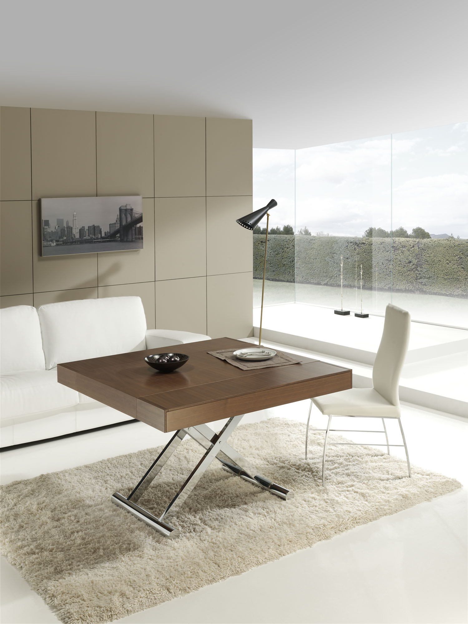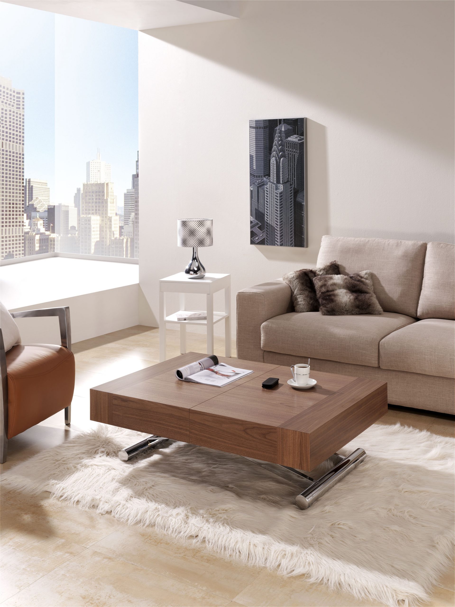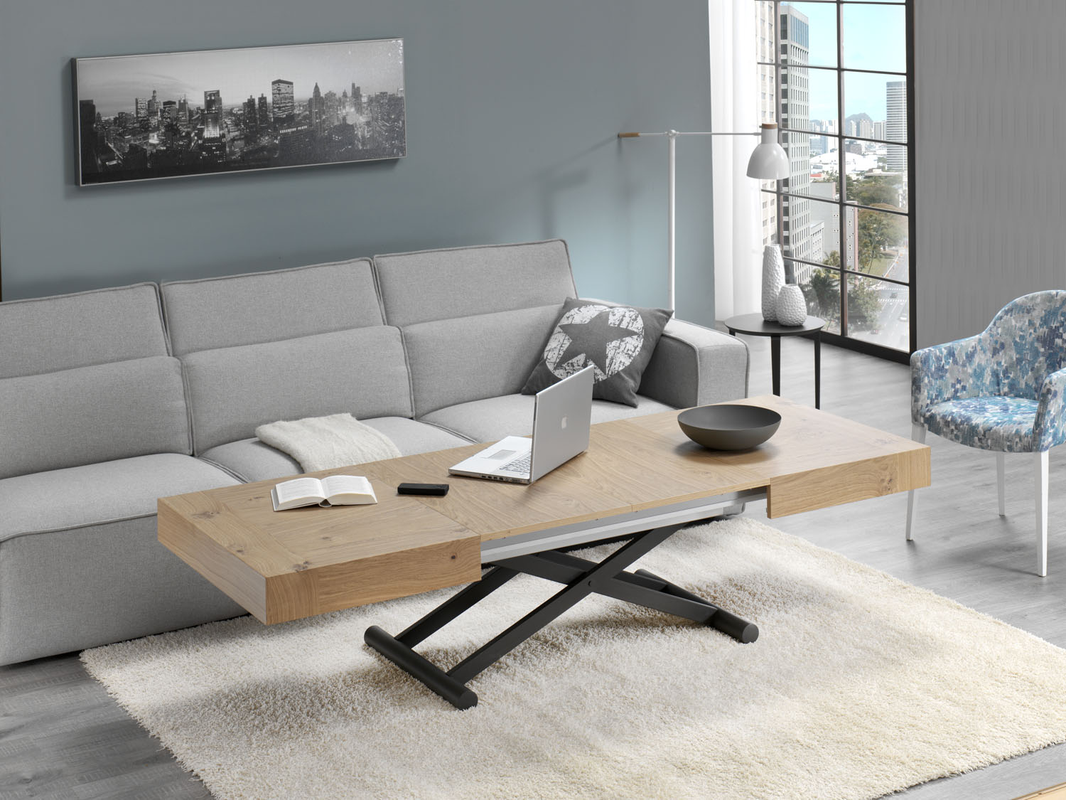 Mesa de centro modelo Activa , con mecanismo extensible y elevador, la mesa de centro que se puede convertir en una amplia mesa de comedor.