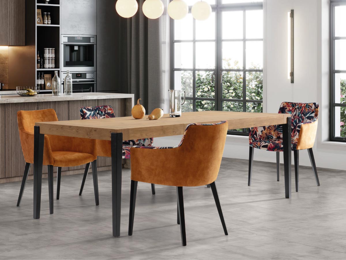 El diseño de nuestra mesa Tempo es de gran utilidad en cuanto a forma, dimensiones y funcionalidad. La pata incrustada en la estructura le confiere un encanto único, y su sistema elevable en formato centro la hace muy práctica.