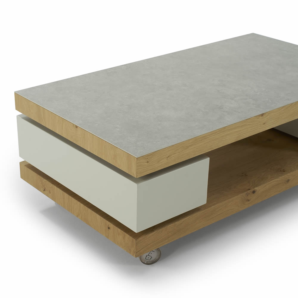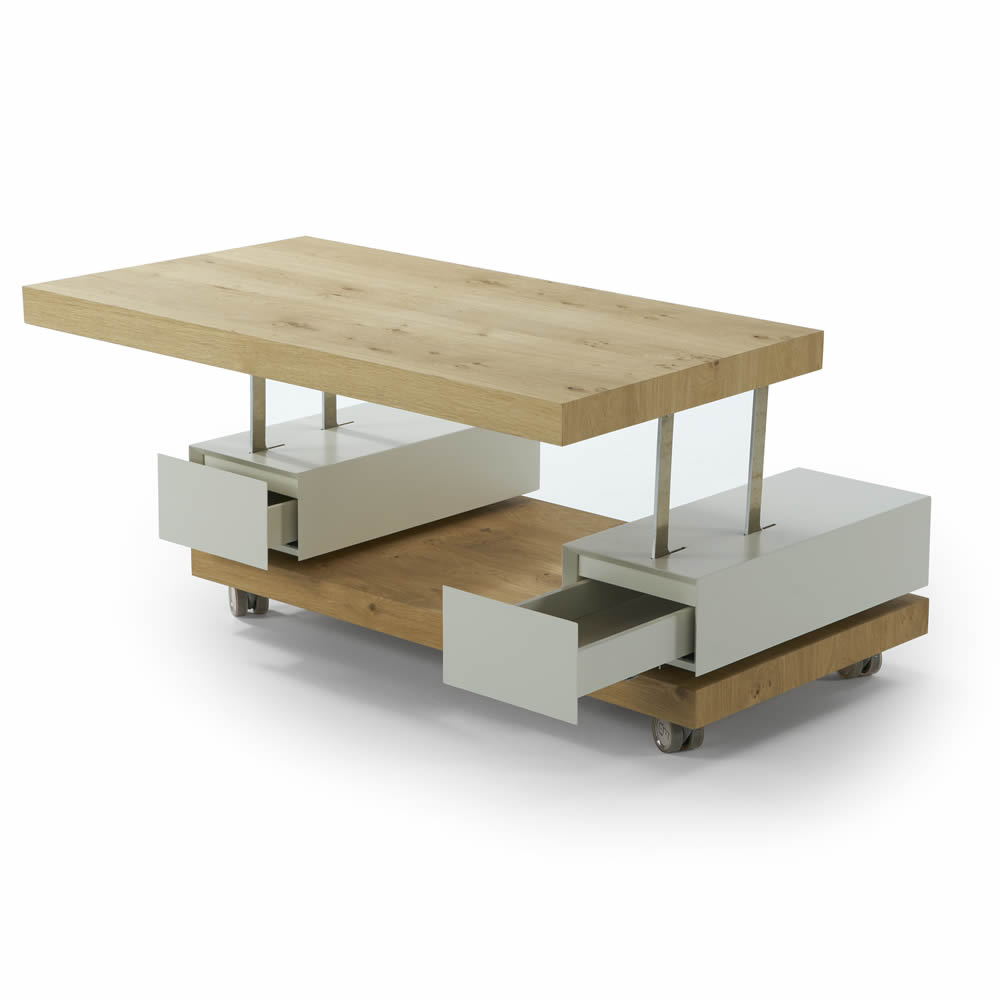 Mesa de centro modelo Diva rectangular elevable con 2 cajones
