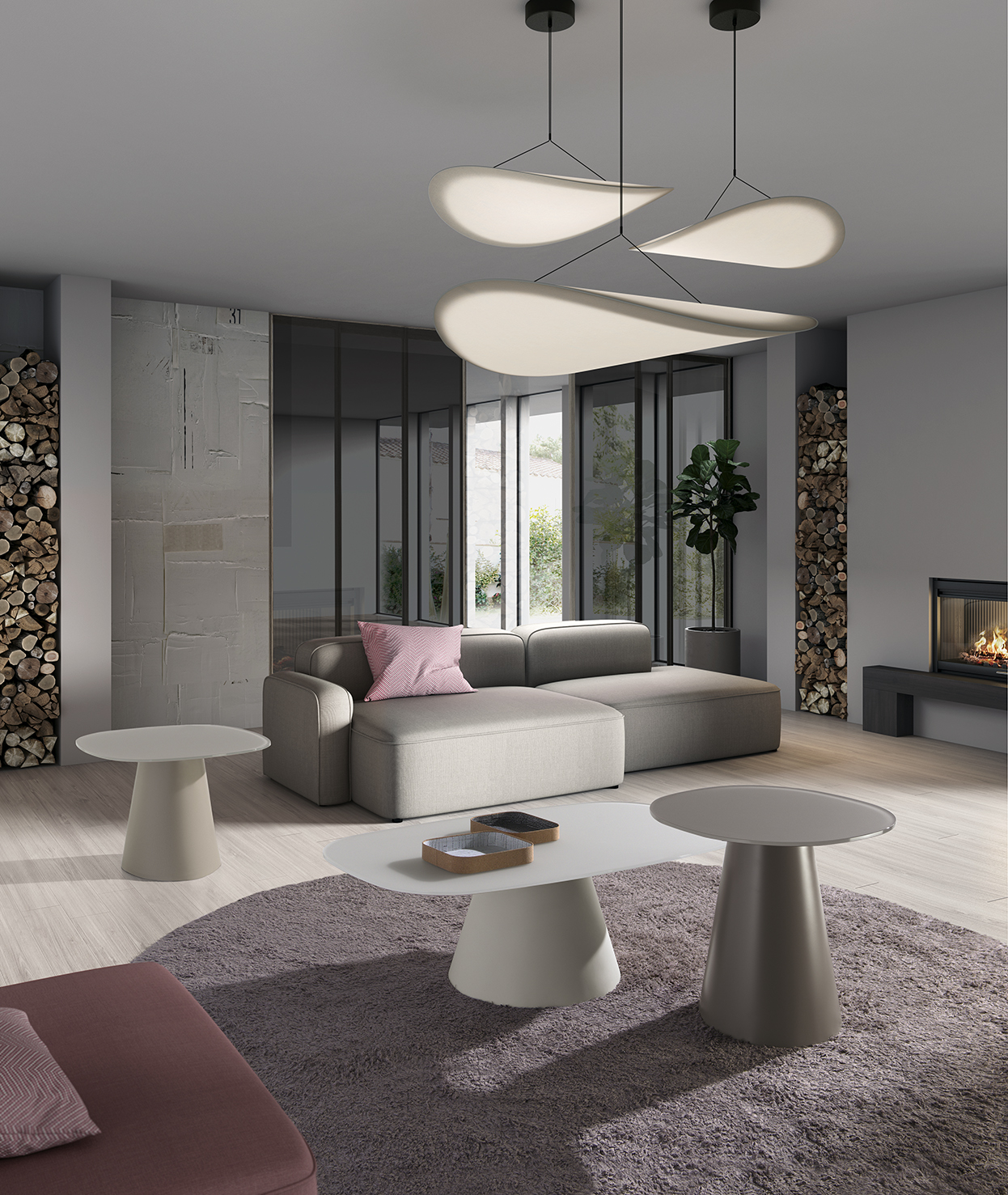 Mesa de centro con estructura Arena, Visón, Nube , y tapa Arena Mate , Visón mate , Nube mate.