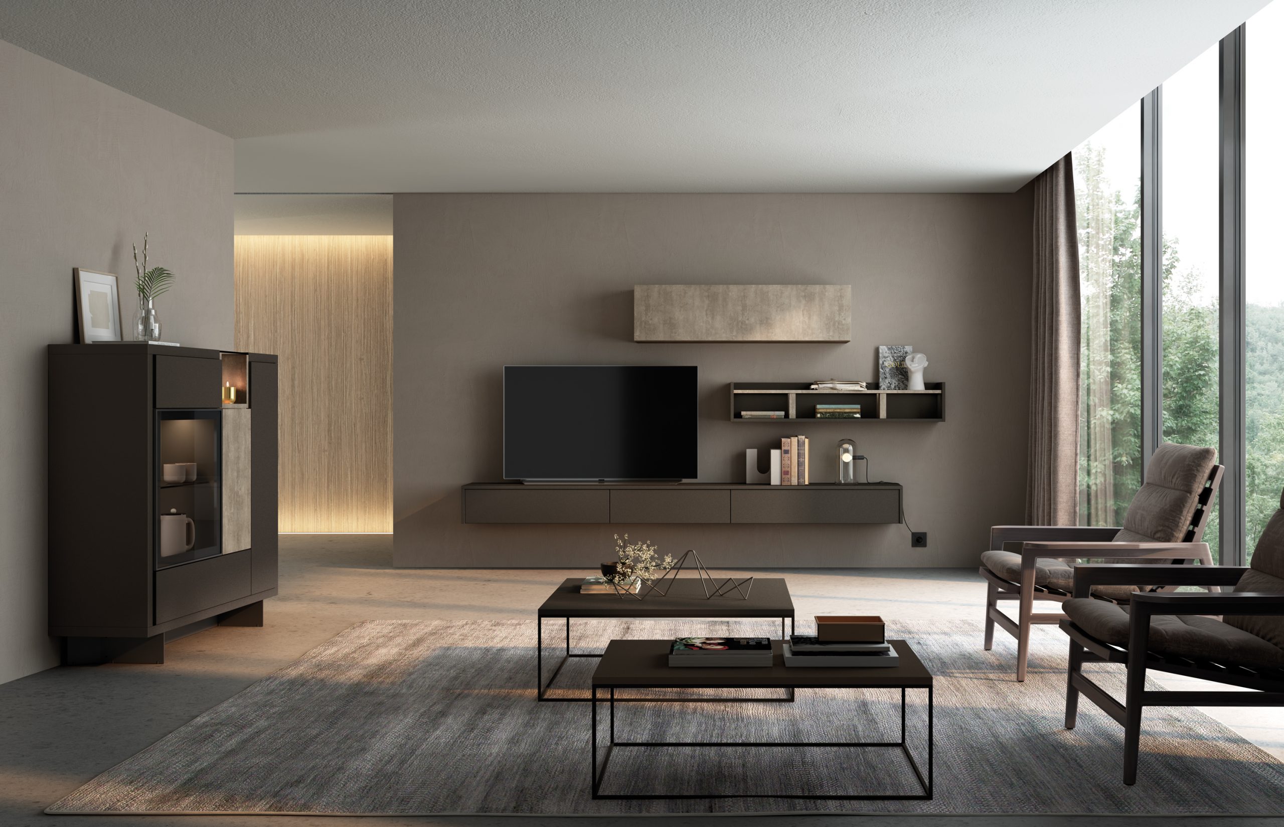 Todo al Ónix. Una composición colgada que aporta un toque fresco y actual al salón-comedor.