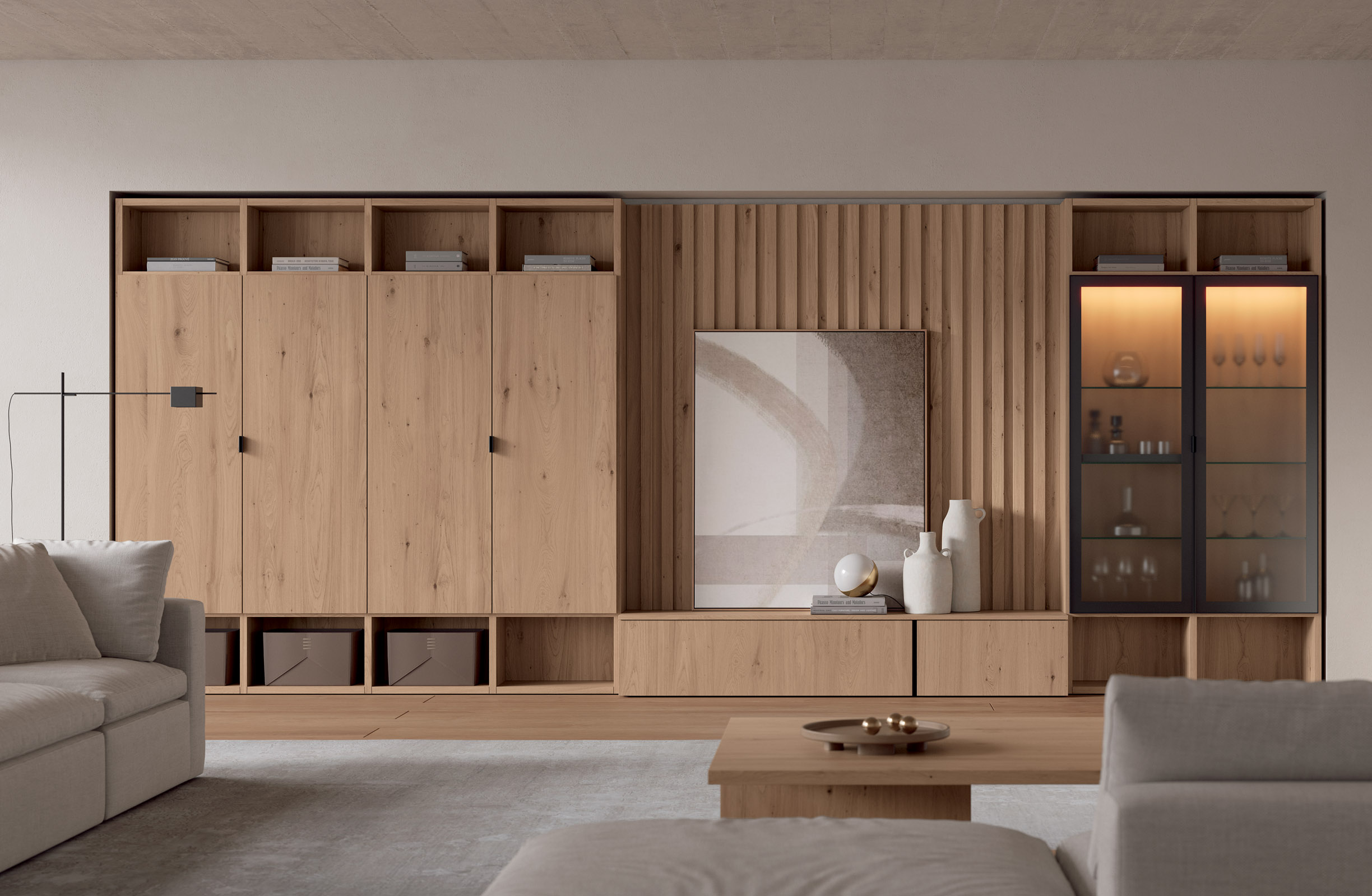 nan el acabado Nut y las vitrinas con cristal