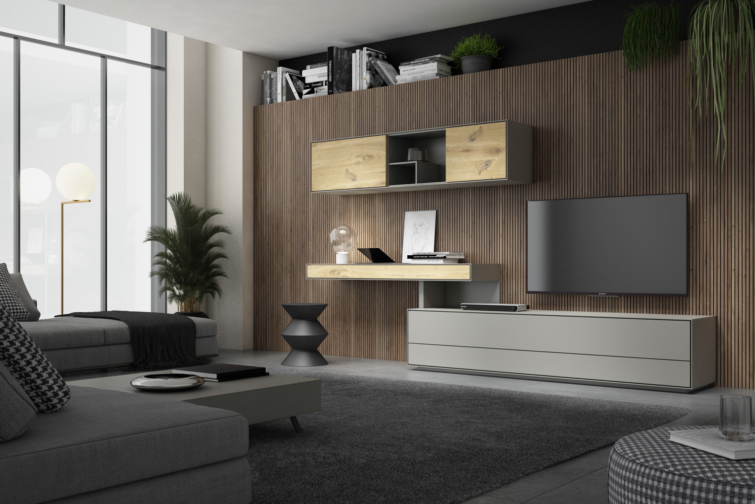 Uno de los grandes atractivos del Mueble de Salón LOFT 07 es su encimera volada con cajón.