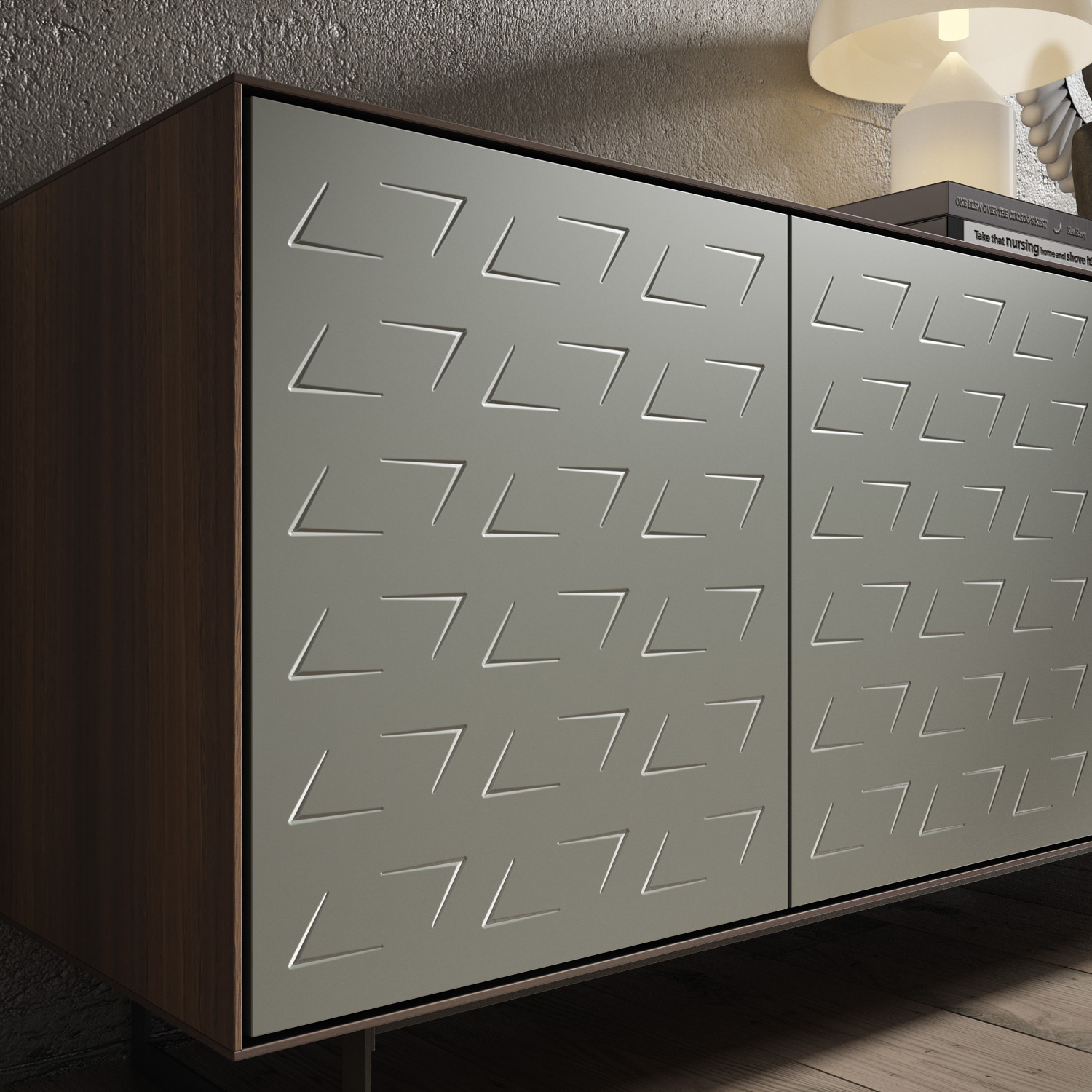 Aparador de 4 puertas batientes decoradas: 2000×600 mm (Nogal / Green).