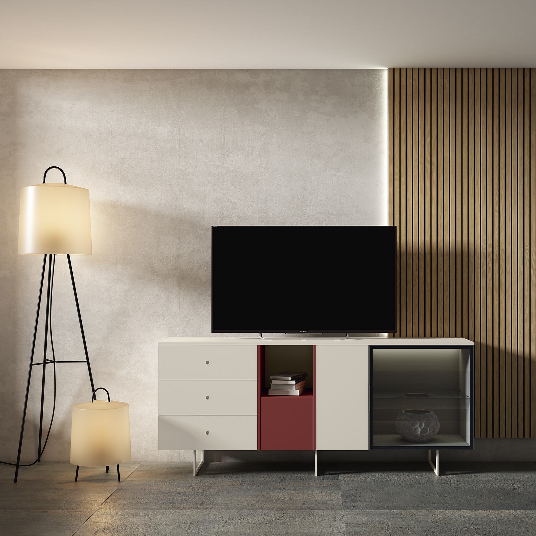 El Aparador BRAVE.BOC.06 combina elegancia, versatilidad y diseño moderno. Su estética cuidada lo convierte en una pieza ideal tanto como mueble bajo de televisión como para almacenaje en cualquier estancia del hogar. Además, su vitrina aporta ligereza visual y la posibilidad de mostrar tus objetos más especiales con estilo.