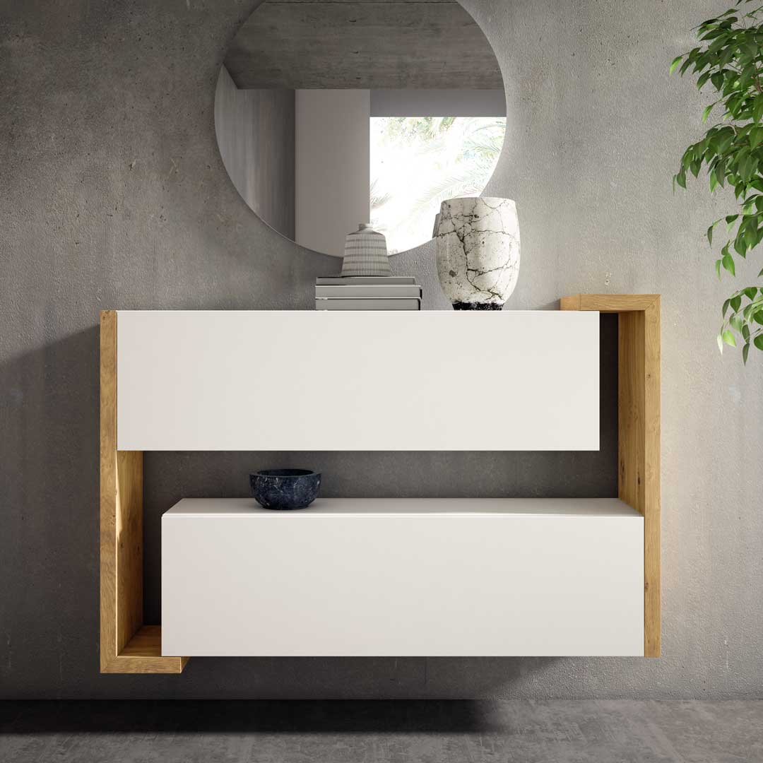 Fabricado con materiales de primera calidad, el Recibidor BRAVE.BOC.31 combina la resistencia del Roble Hera con la elegancia del lacado Visón.
