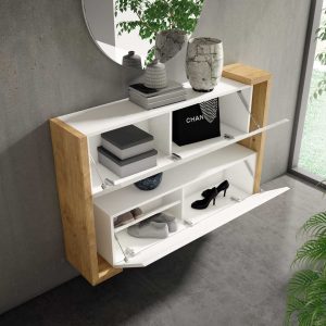 Gracias a su fondo reducido y a su forma equilibrada, puede colocarse tanto en recibidores como en pasillos o zonas de paso, aportando estilo sin sobrecargar el ambiente.