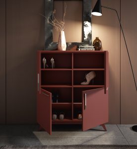 El Recibidor BRAVE.BOC.32 no solo impresiona por su aspecto, sino también por su funcionalidad. En su interior alberga seis estantes ajustables, convertibles en zapatero, ideales para mantener el orden sin sacrificar la estética.