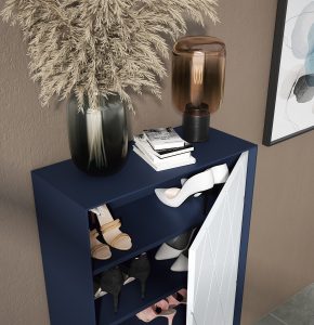 El modelo LEONARDO cuenta con puertas abatibles con apertura push, que facilitan su uso diario y mantienen una estética limpia y minimalista. Sus medidas de 65x110x30 cm permiten aprovechar el espacio sin renunciar a la capacidad de almacenaje, convirtiéndolo en una solución práctica tanto como zapatero como para guardar objetos personales o decorativos.