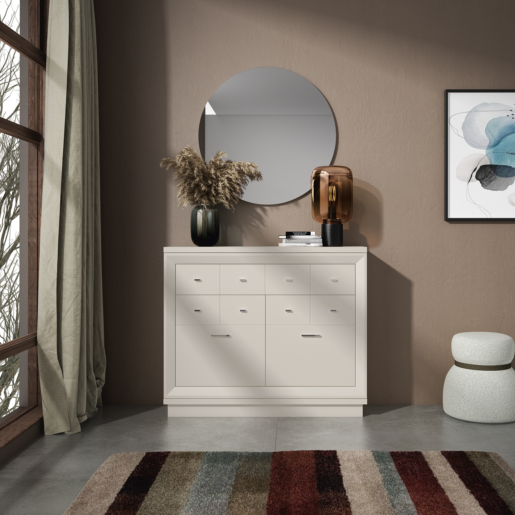 El Recibidor BRAVE.BOC.49 es una pieza elegante y funcional que destaca desde la primera mirada. Su diseño con zócalo a suelo en color visón transmite serenidad y estilo, convirtiéndose en el complemento ideal para cualquier entrada.