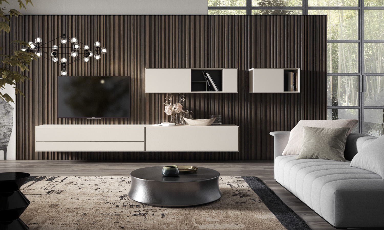 Su estructura suspendida aporta sensación de amplitud, mientras que sus líneas rectas y acabados mates le otorgan un carácter contemporáneo que se adapta fácilmente a cualquier estilo de hogar.