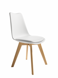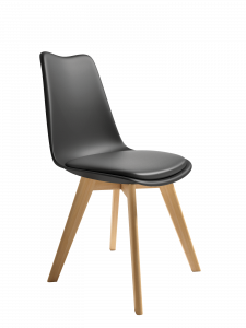 Silla con respaldo de polipropileno y asiento tapizado.
