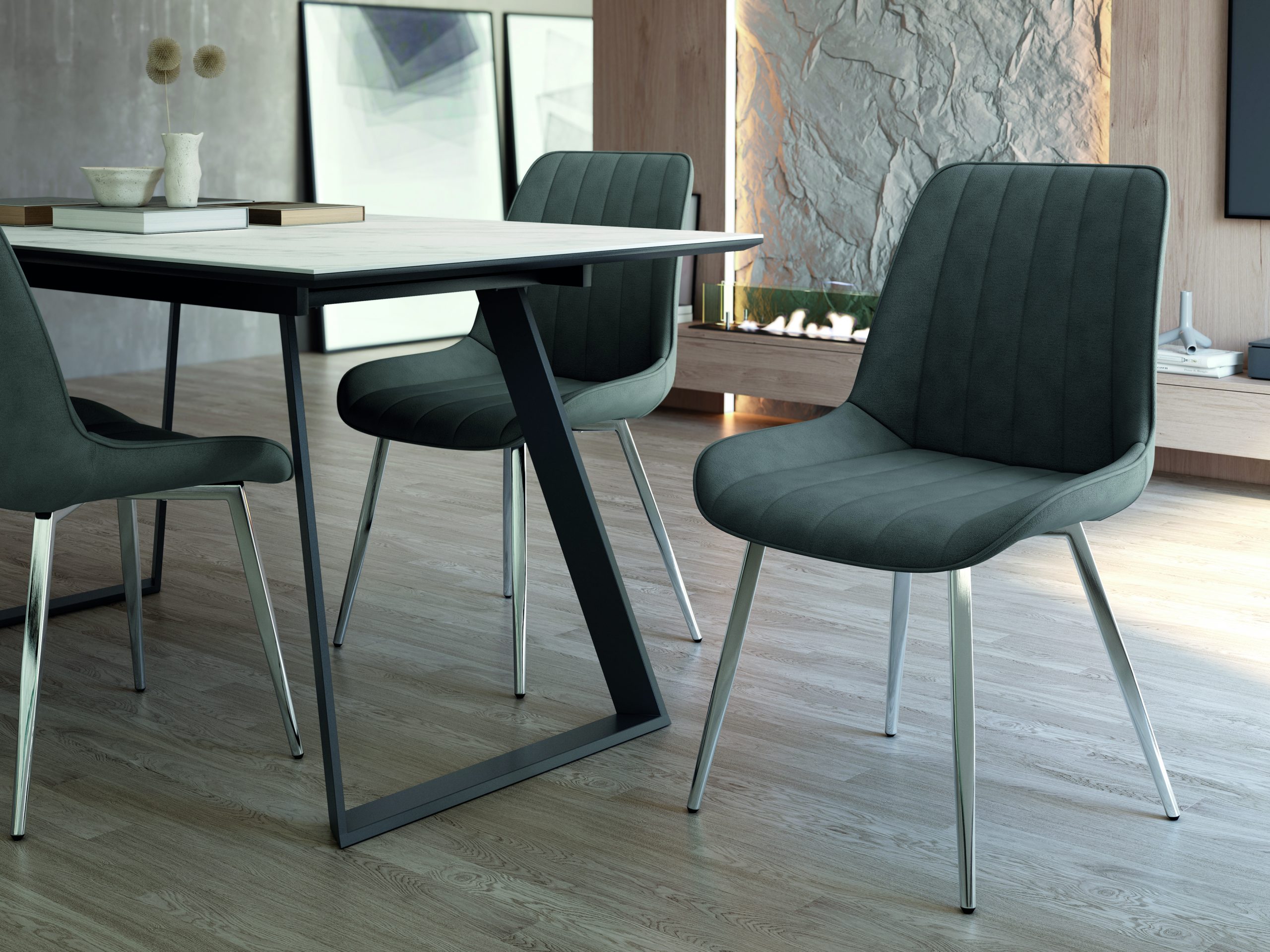 Patas metálicas cromadas.