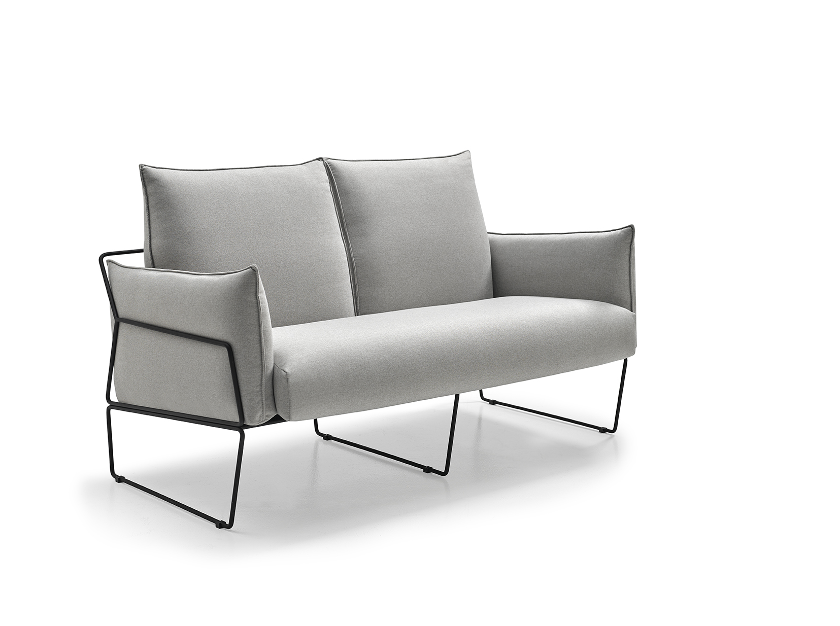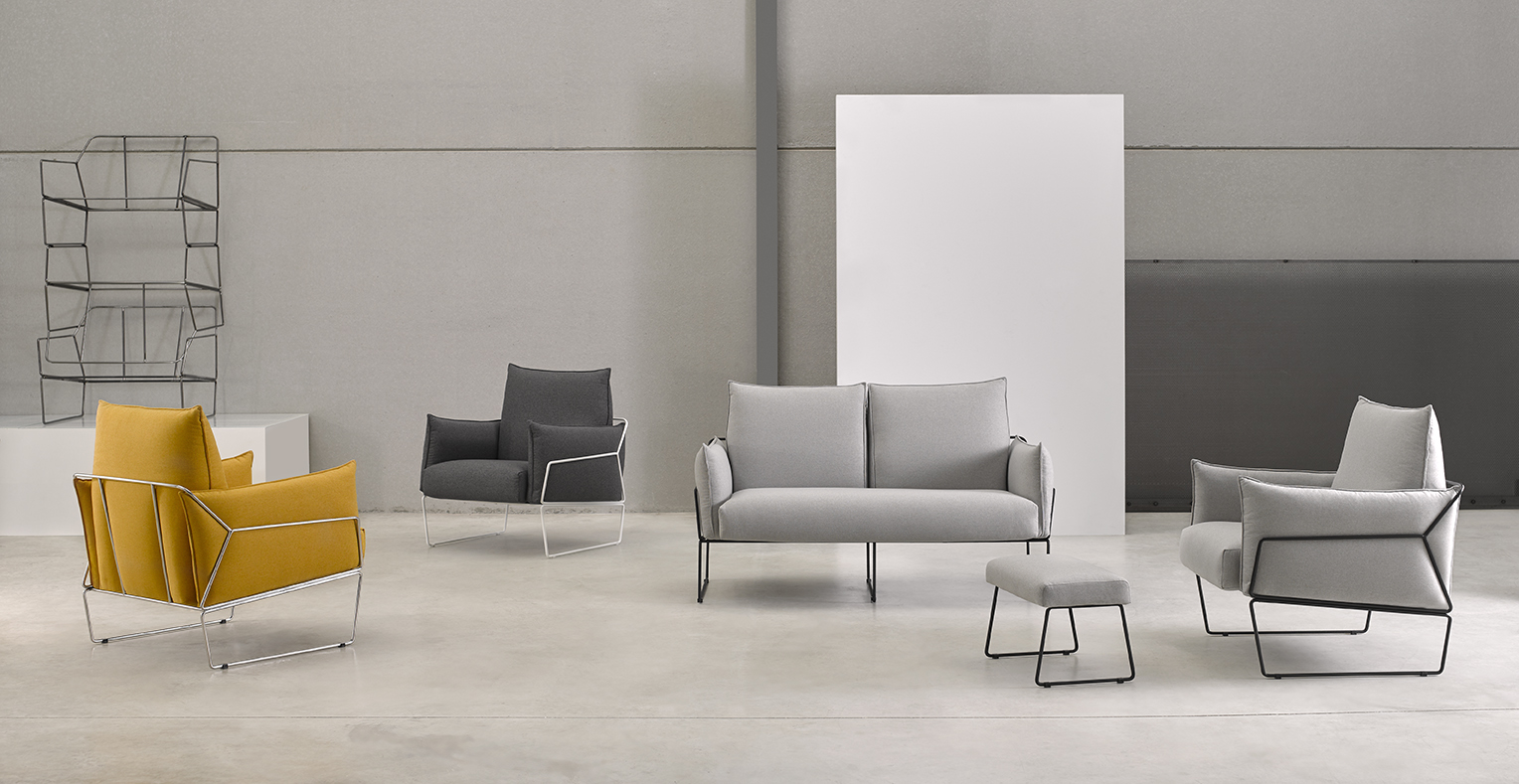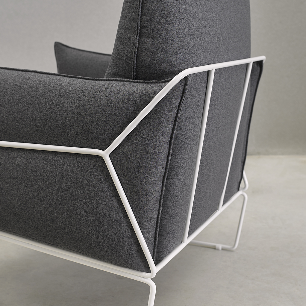 La butaca Gemma metal de líneas depuradas geométricas y cojines con pestaña francesa es una pieza totalmente funcional, ergonómica y atemporal. Completamente desenfundable. Con puf a juego opcional.
