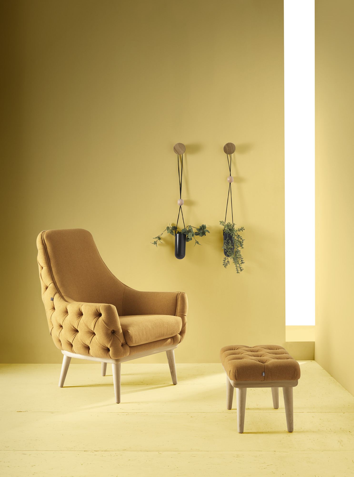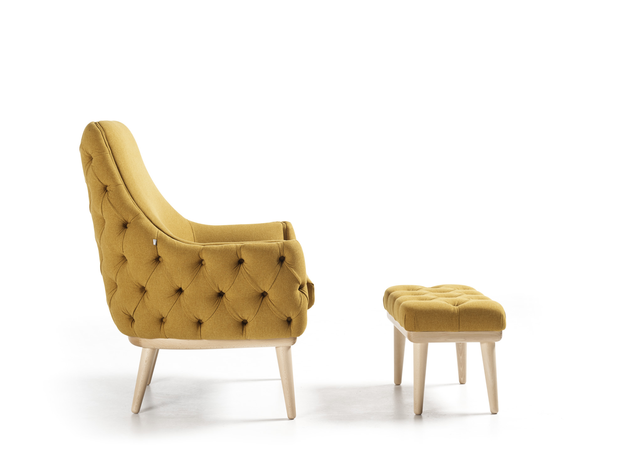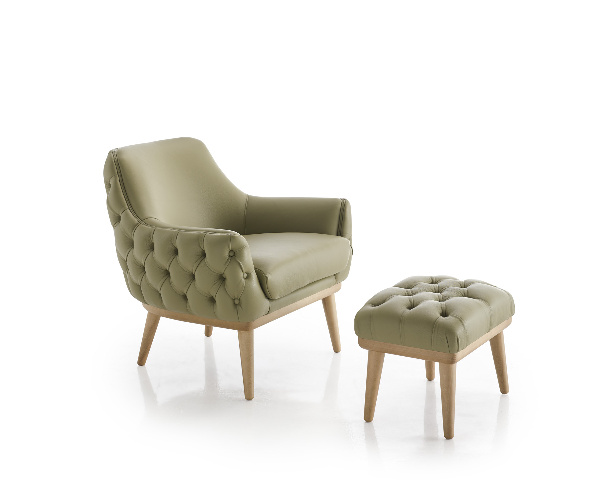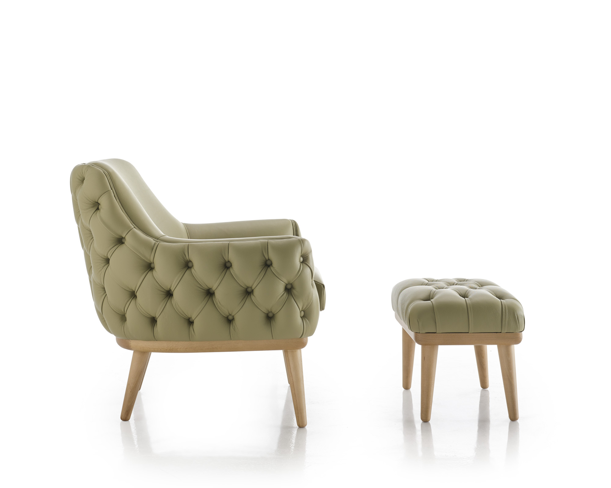 Esta butaca la hacemos en 1 pl. y 2 pl. con respaldo alto o bajo y con pouff capitoné a juego.