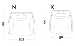 El asiento amplio, junto con el respaldo envolvente, garantiza una sensación de descanso profundo. Además, su brazo estrecho permite aprovechar mejor el espacio, ofreciendo un asiento más ancho sin aumentar las dimensiones del sillón.