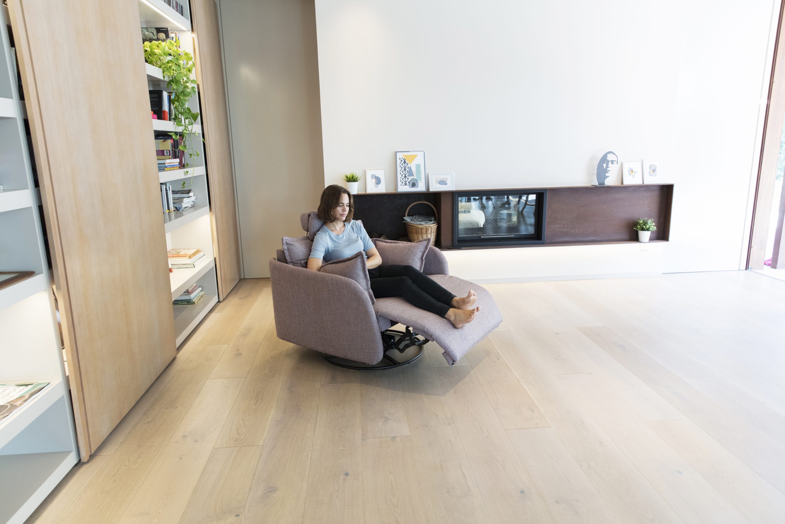 De esta manera, el usuario puede reclinar el sillón sin preocuparse por la distancia con la pared, disfrutando de un movimiento fluido y silencioso en cualquier posición.