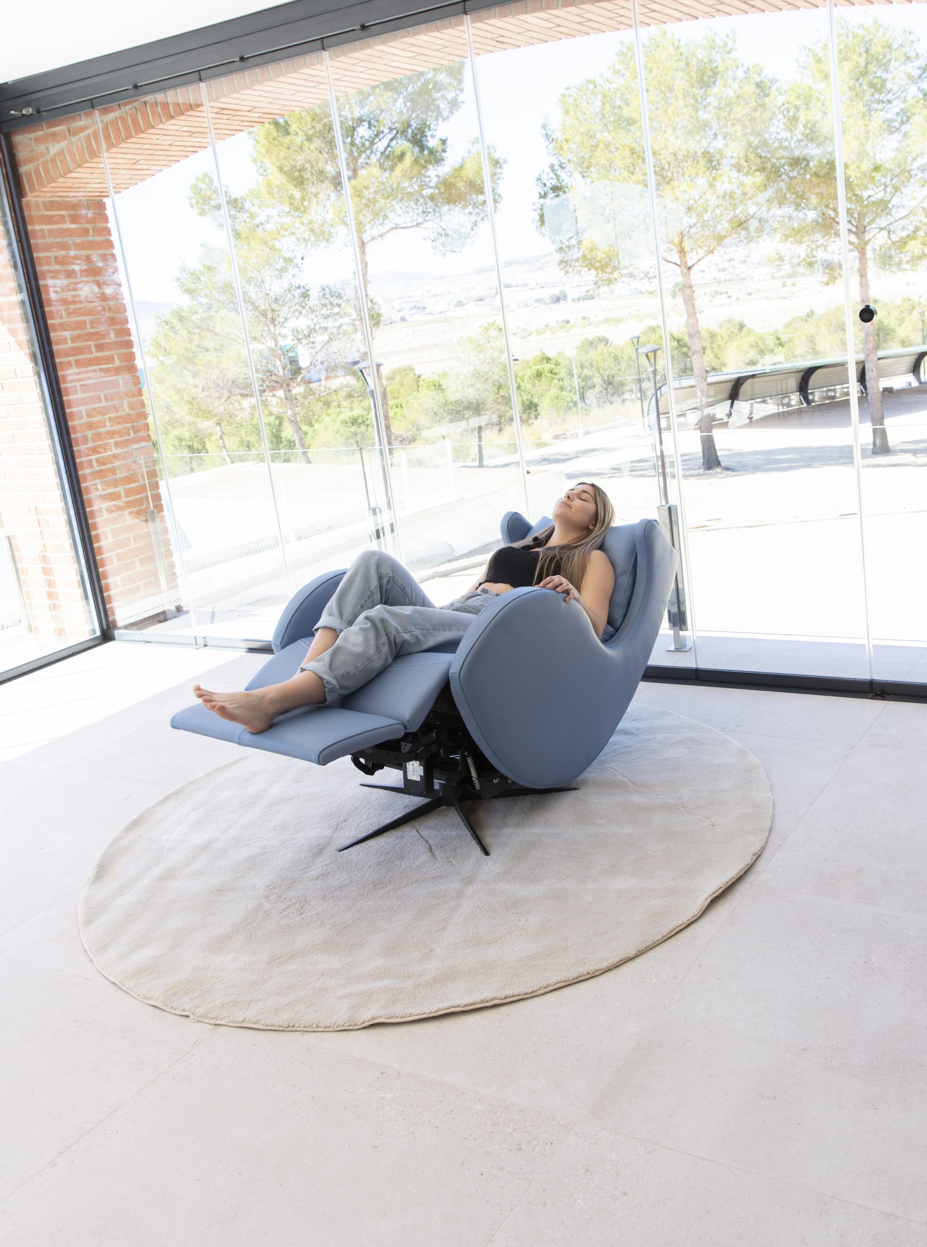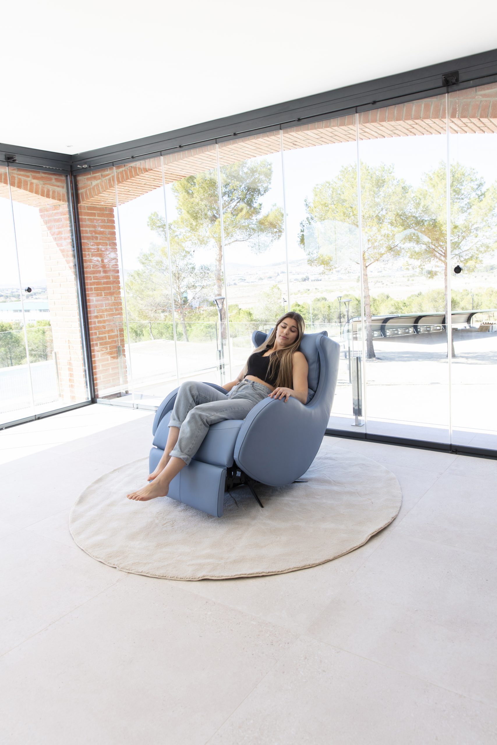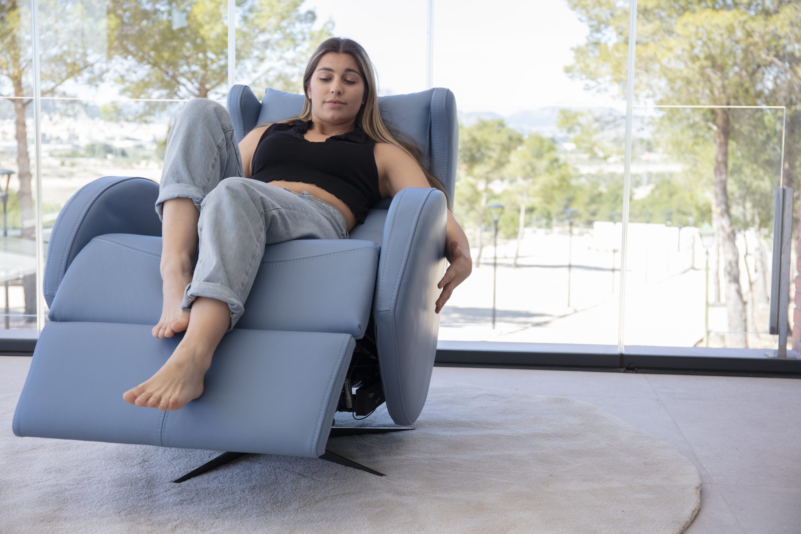 Gracias al sistema relax, el usuario puede ajustar fácilmente la posición del respaldo y el reposapiés, alcanzando la postura ideal para leer, ver la televisión o simplemente relajarse. Su movimiento fluido y silencioso asegura una sensación de confort continua.