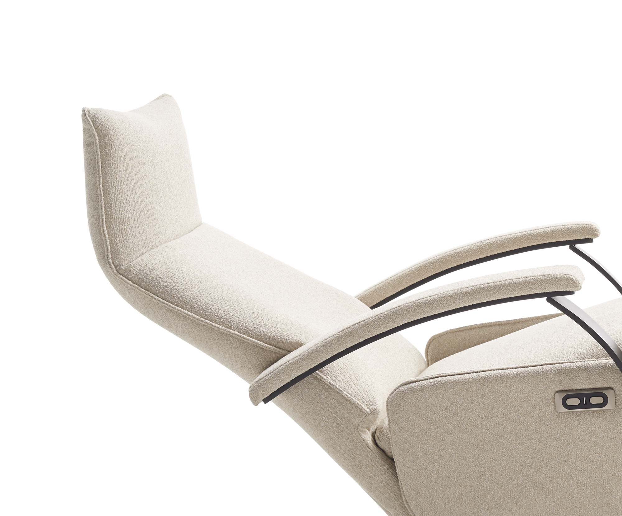 - Brazos Articulados: Los brazos son articulados y se ajustan junto con el movimiento del respaldo y el reposapiés, ofreciendo un soporte continuo y una comodidad adicional.