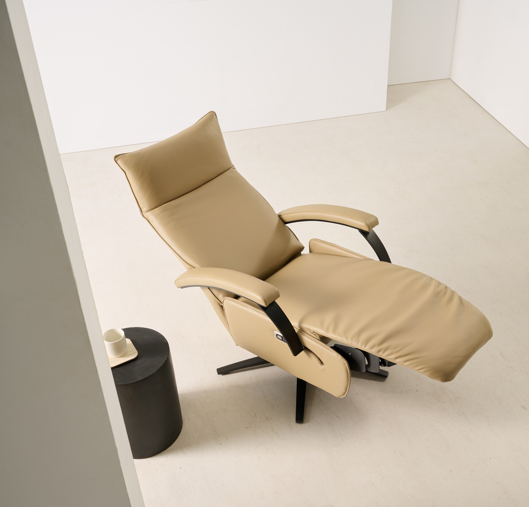 El relax Tempo tiene una línea muy ligera y actual. Su acolchado nos transporta a los respaldos de los coches clásicos. La cabecera reclinable aporta mucha comodidad cuando estamos tumbados. Disponible en mecanismo manual o en dos motores y con distintas opciones de bases.