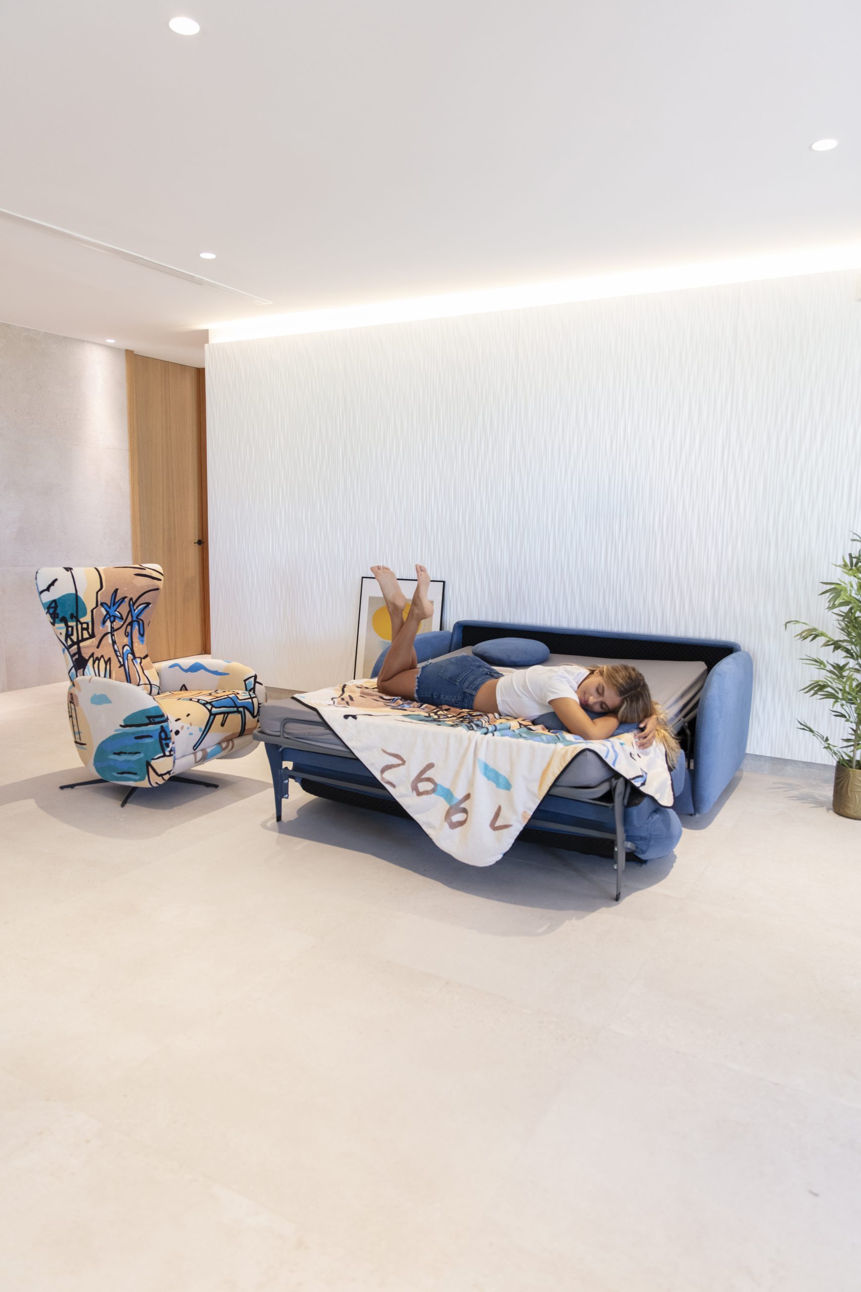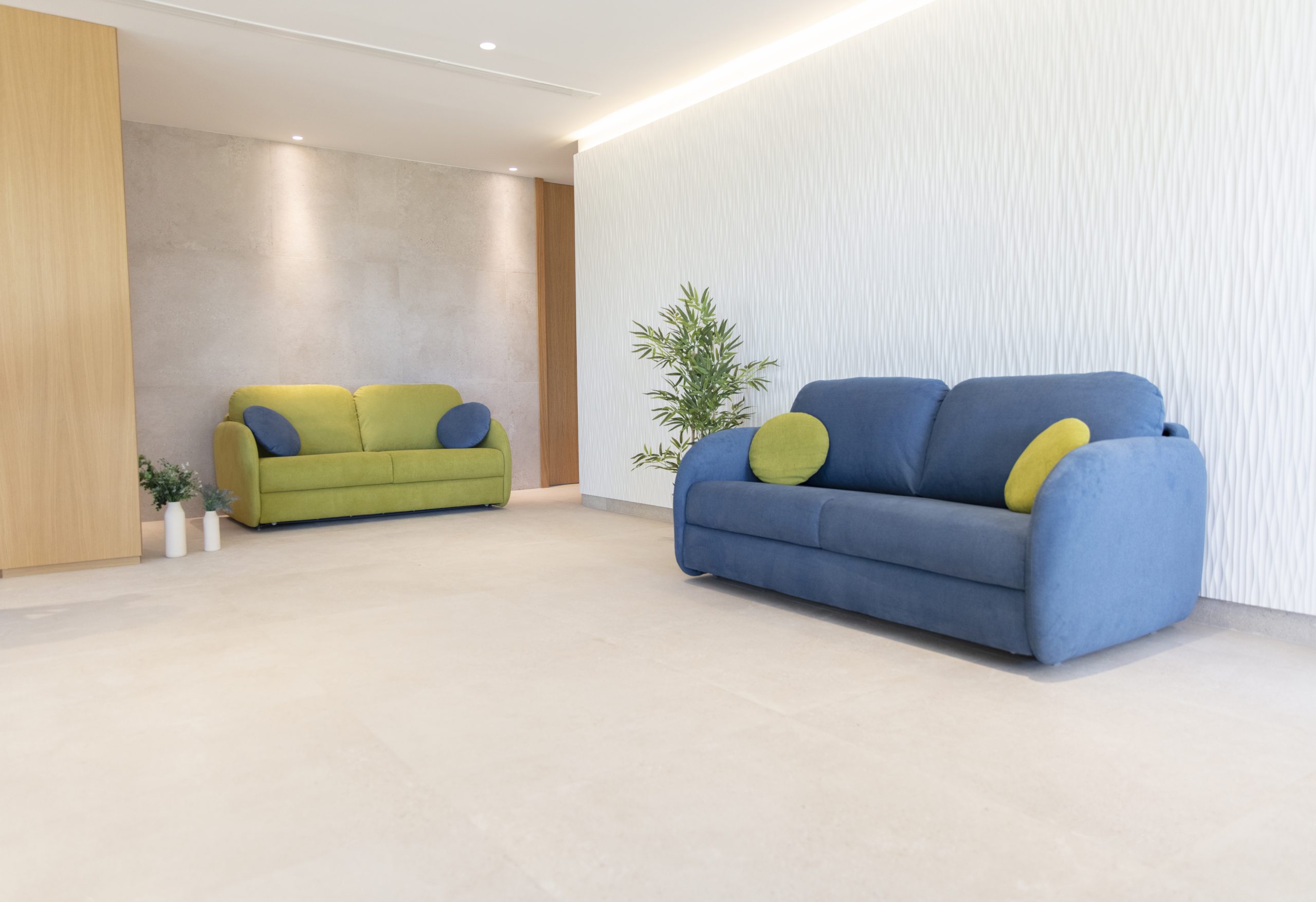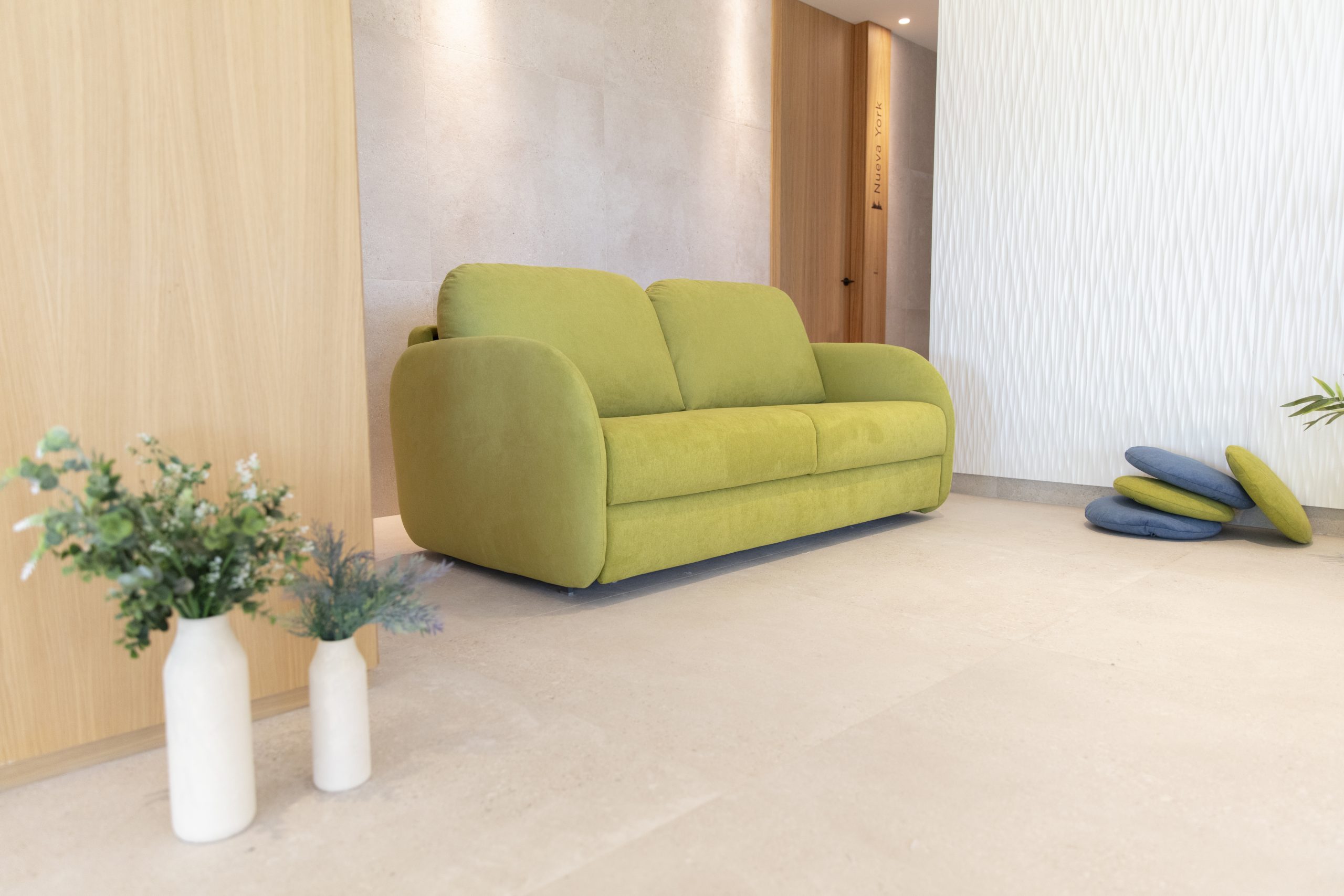 Además de su estética cuidada, el sofá cama Bopy ofrece servicio express en una selección específica de tejidos y colores, permitiendo disfrutarlo en menos tiempo y con las combinaciones más populares del catálogo Fama.