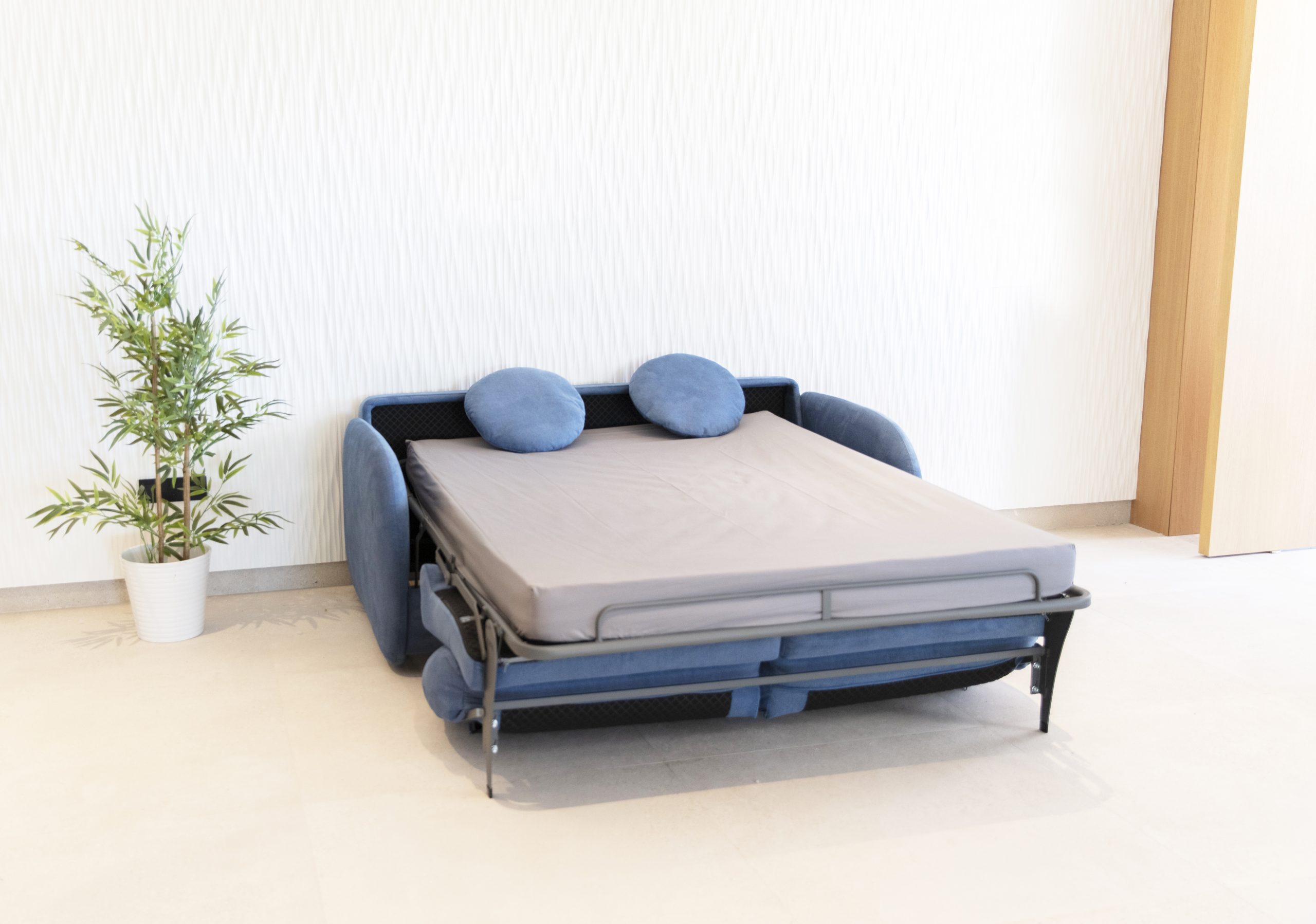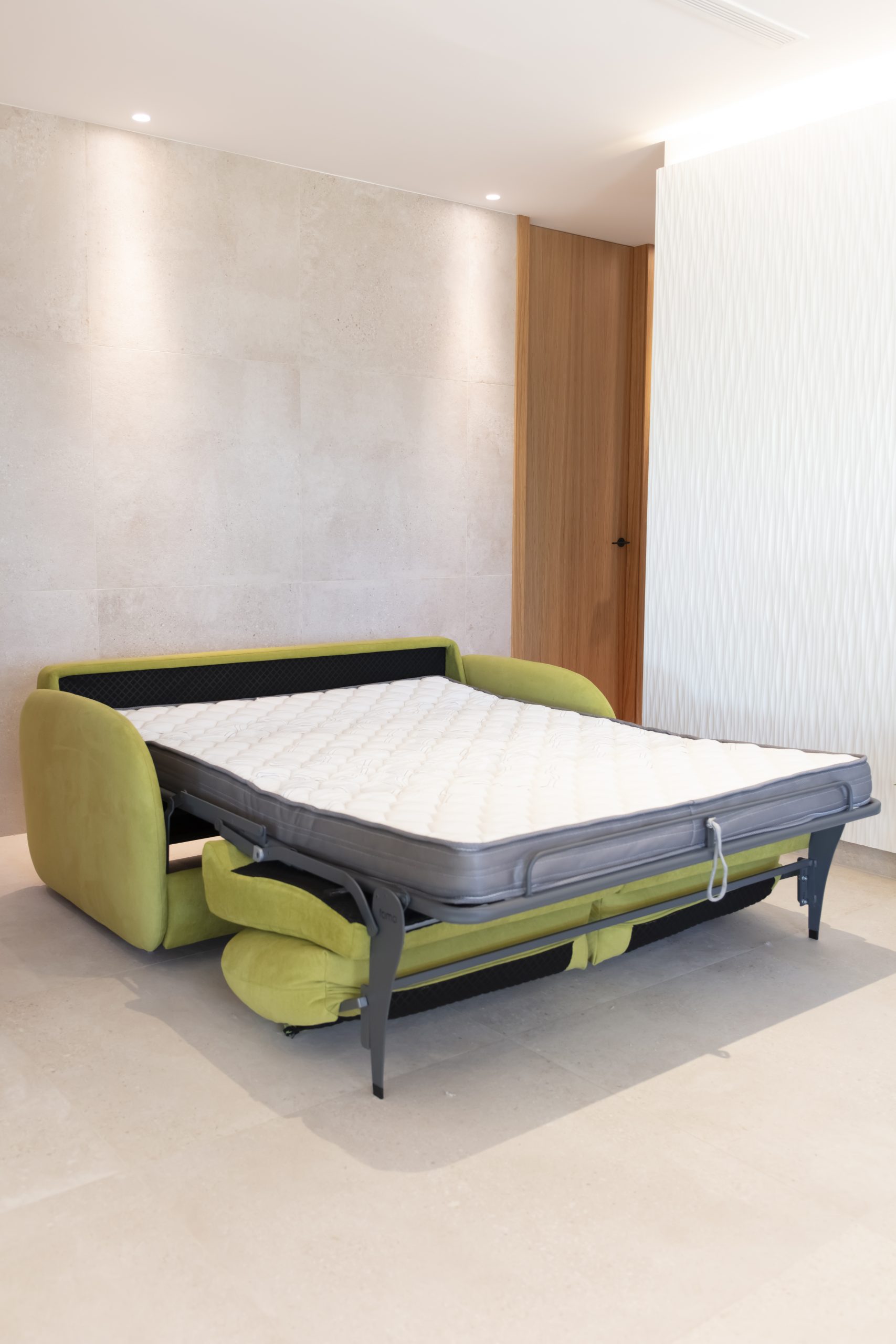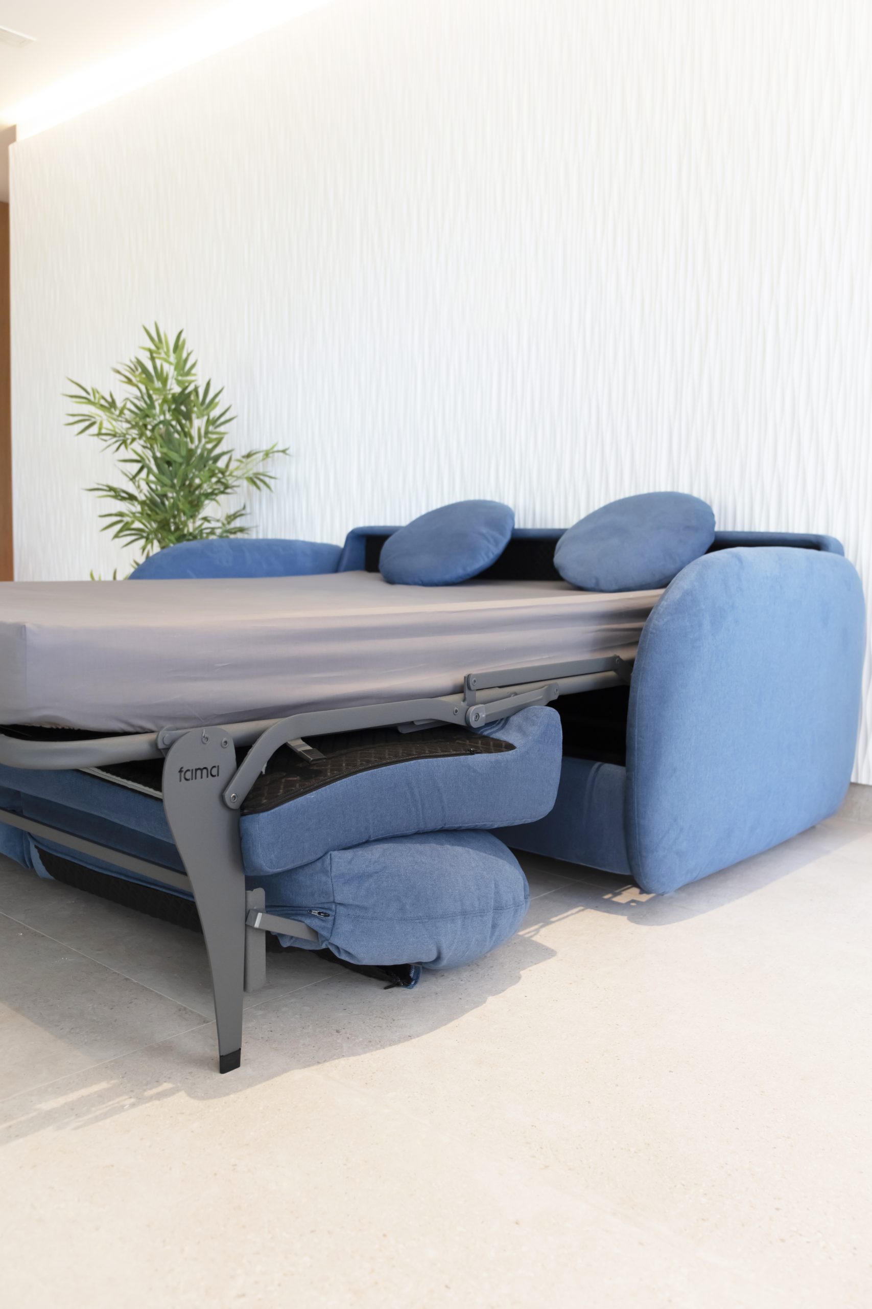 El sofá cama Bopy cuenta con un sistema de apertura italiana, que permite transformarlo en cama de forma rápida, fluida y sin esfuerzo. Este mecanismo garantiza una experiencia de uso cómoda y duradera, ideal para quienes desean un sofá práctico pero con una imagen cuidada.