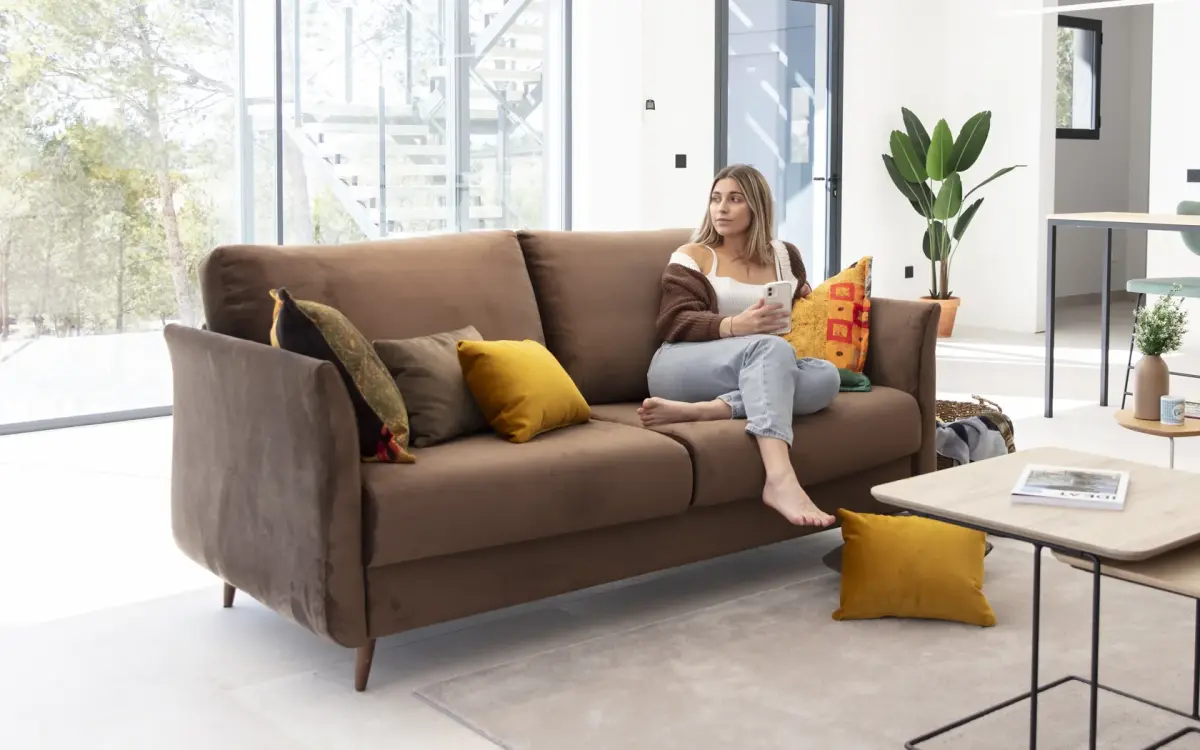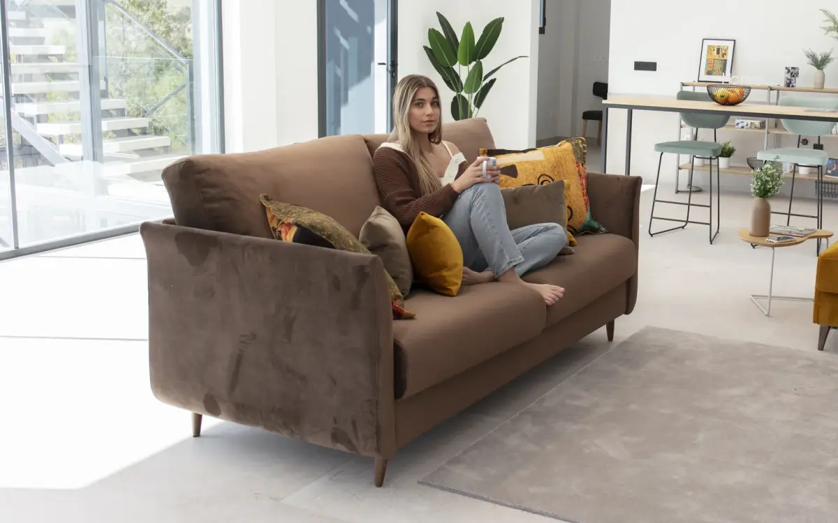 A primera vista, nadie imaginaría que se trata de un sofá cama, lo que lo convierte en una opción ideal para salones modernos y sofisticados.