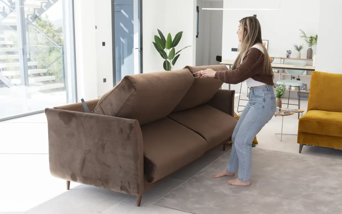 Su estructura ligera y su sistema de apertura fluido permiten convertirlo en cama en segundos, sin esfuerzo y sin alterar la armonía del entorno. Además, su altura y proporciones exactas aseguran que siga siendo un sofá cómodo y elegante incluso en uso diario.