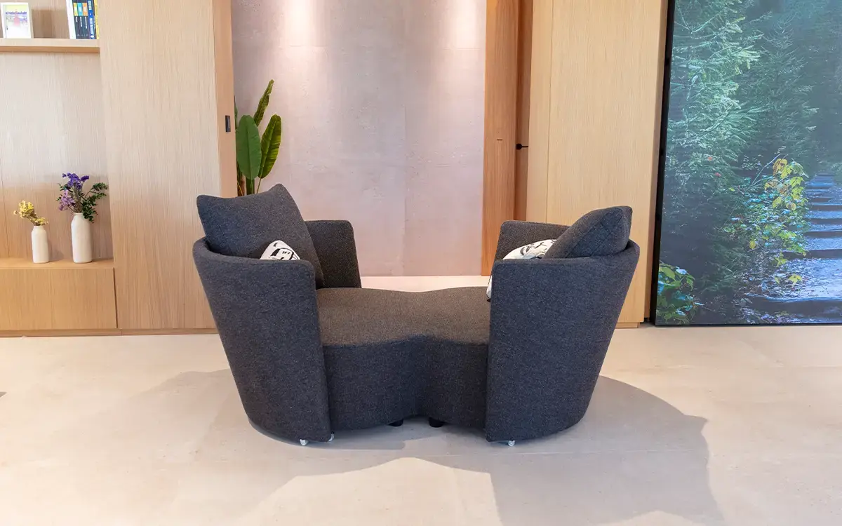 Lo que hace especial al sofá Infinity es su sistema de rotación, que permite orientar los asientos en distintas direcciones sin mover el sofá. Gracias a este mecanismo, el usuario puede cambiar de posición de forma cómoda y fluida, sin necesidad de desplazar muebles ni perder espacio.