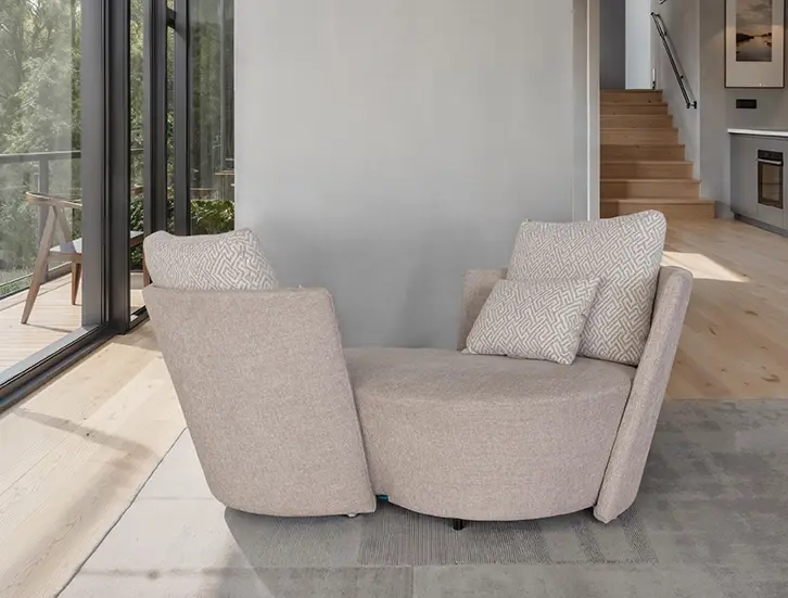 El sofá Infinity resume la esencia de Fama Sofás: unir diseño, innovación y bienestar emocional en una pieza única. Gracias a su mecánica giratoria, su comodidad envolvente y su versatilidad estética, este modelo se adapta a cualquier estilo de vida, ofreciendo una experiencia de confort y conexión únicas.