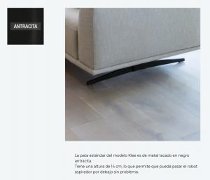 Estas medidas resultan ideales para espacios compactos o para personas que prefieren un apoyo más vertical, sin renunciar al confort. En cambio, el Klee dispone de 105 cm de profundidad y 42 cm de altura, ofreciendo una sentada más relajada y horizontal.