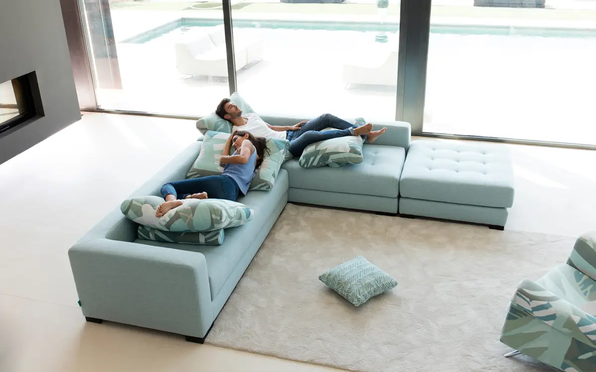 Una de las características más destacadas del sofá Manacor son sus respaldos multiposicionales, que permiten ajustar la inclinación de forma sencilla y rápida. Gracias a este sistema, el usuario puede encontrar la posición perfecta en cada momento, adaptando el sofá a su forma de sentarse o descansar.