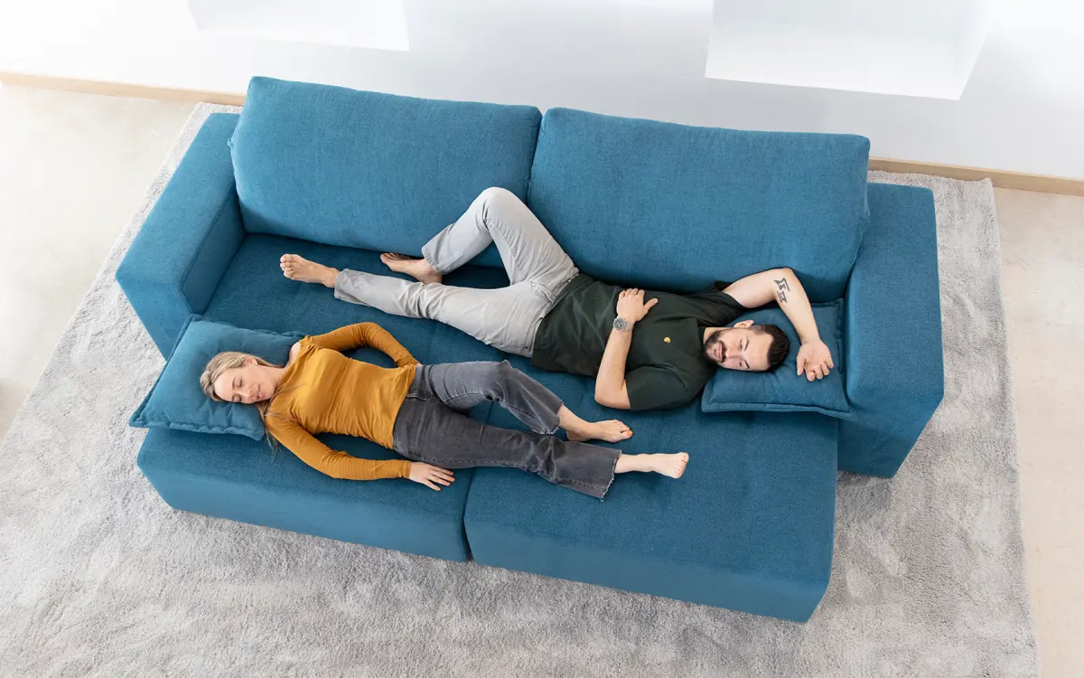 Gracias a su diseño de solo 99 cm de profundidad, el Paradis se adapta incluso a los salones más pequeños, ofreciendo un espacio generoso para relajarse solo, en pareja o en familia.