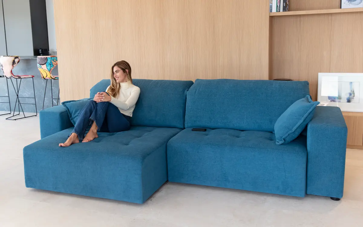 Además, su estructura compacta y su sistema motorizado lo hacen ideal para quienes desean un sofá cómodo pero sin ocupar demasiado espacio. Gracias a su versatilidad, puede transformarse fácilmente de un sofá de diario a una zona de descanso completa.
