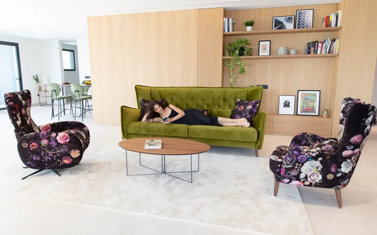 El sofá Simone es un modelo con personalidad propia. Su diseño genera emociones: o lo amas o no es para ti. Pero, sin duda, no deja a nadie indiferente. Es una pieza con alma, diseñada para convertirse en el centro de todas las miradas dentro del hogar.