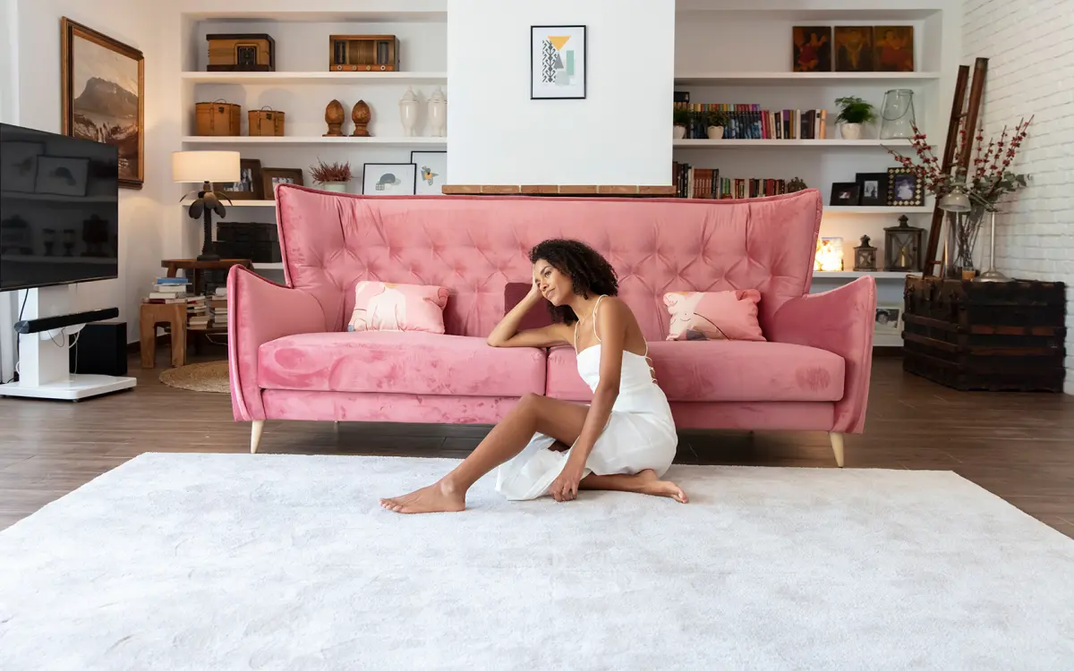 El sofá Simone no solo enamora por su diseño, sino también por su alto nivel de confort. Su respaldo elevado ofrece una sentada vertical y ergonómica, perfecta para quienes buscan apoyo total y una postura saludable.